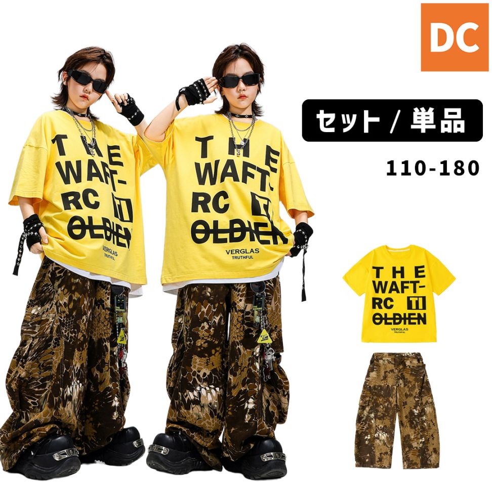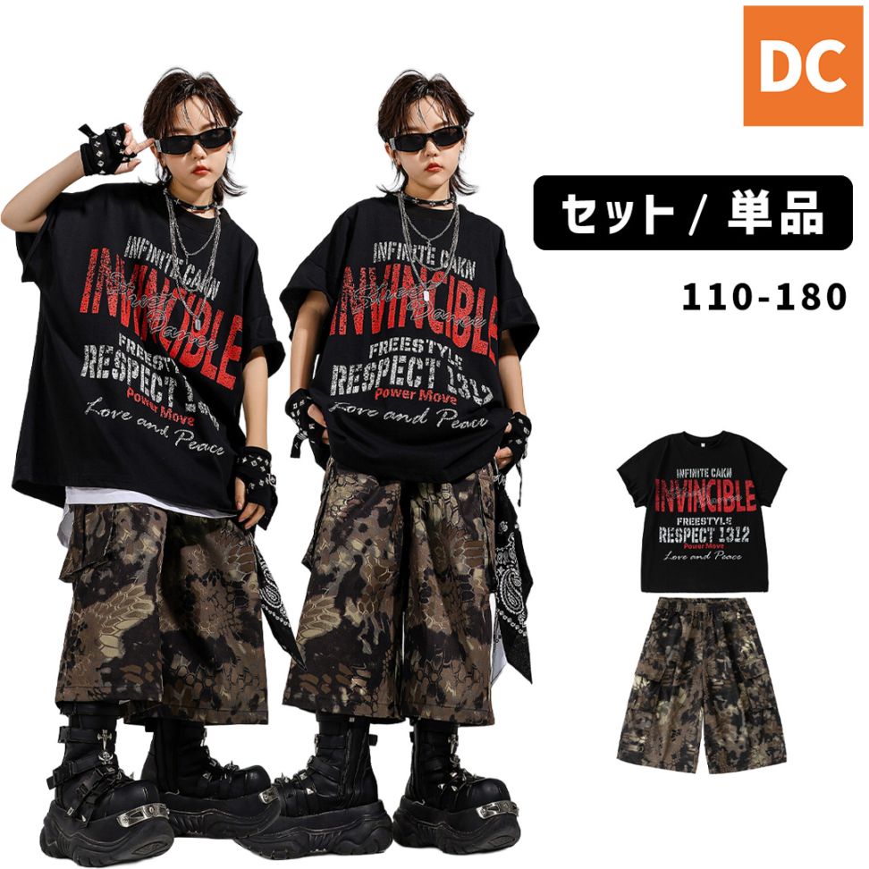 ユニセックス 迷彩 ユニフォーム 半袖Tシャツ ナンバーロゴ 半袖 ロングパンツ ピステ HIPHOP衣装 キッズダンス衣装 110~180【dc-1720】