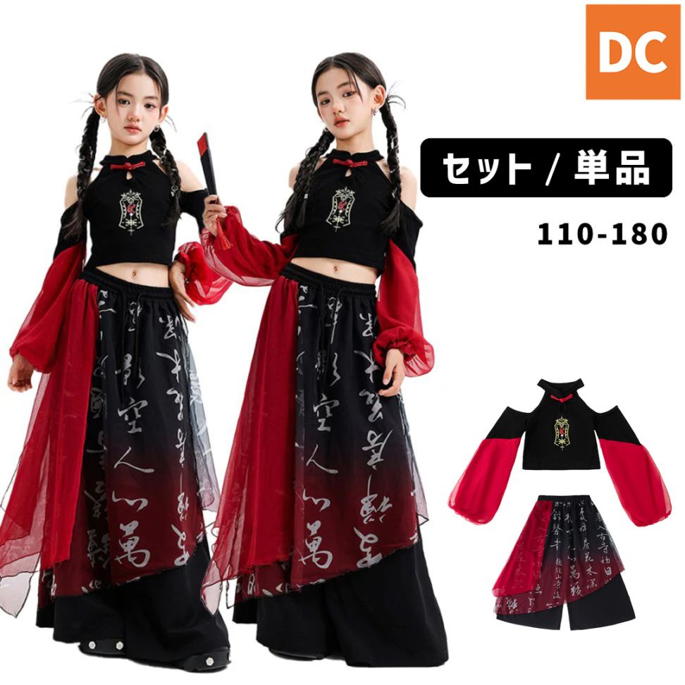 ガールズHIPHOP キッズダンス K-POP ジャズ エスニック ビンテージ グレー ベージュ ブラック スカート ロングパンツ ショートパンツ チーム衣装 110~180【dc-1748】