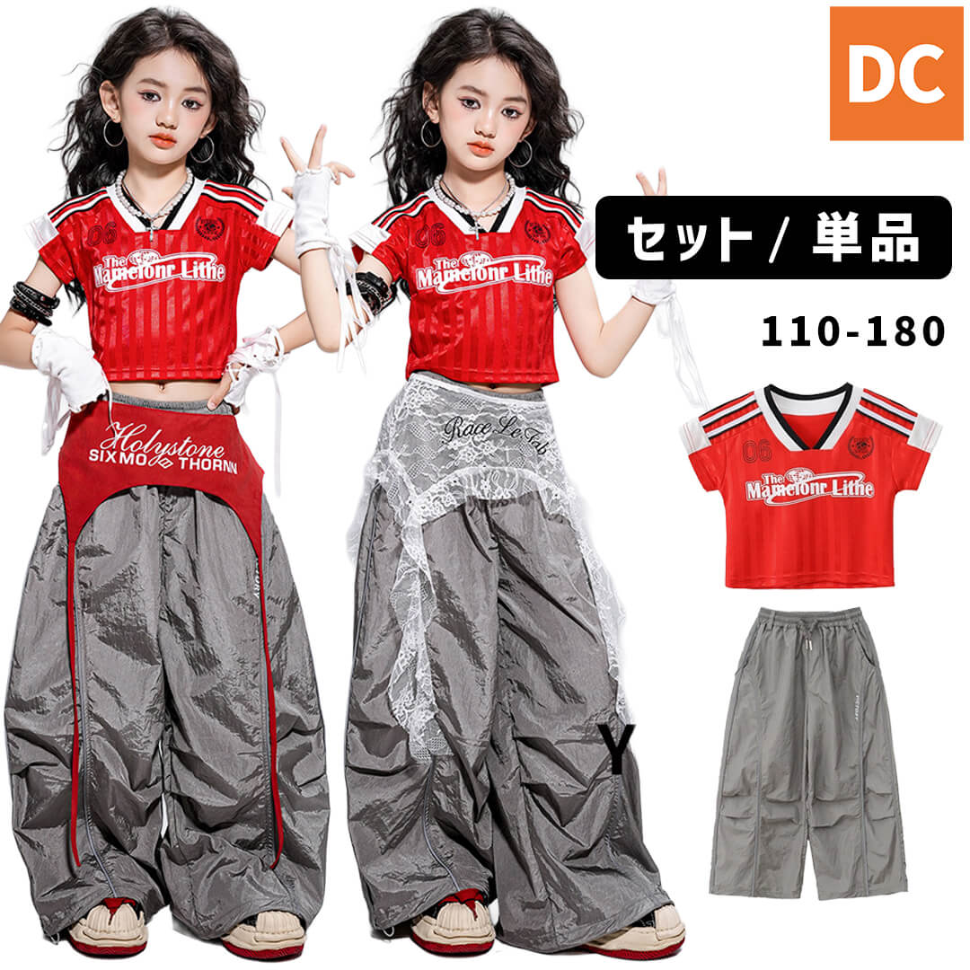 レッドクロップドユニレイヤードパンツセット【dc-2316】