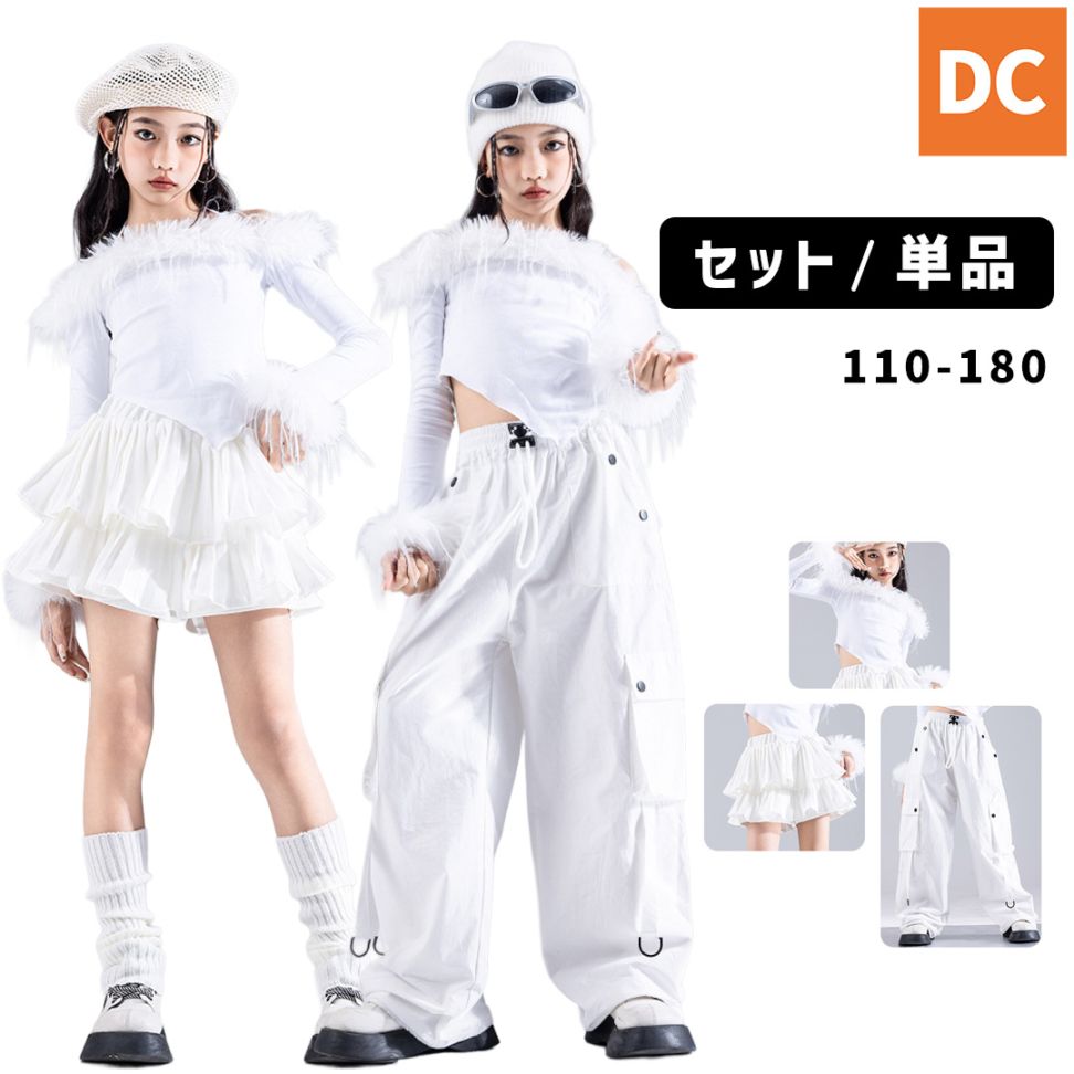 ガールズ ブラック ホワイト ピンク 半袖 へそ出し ロングパンツ カーゴパンツ カラーパンツ HIPHPO【dc-2135】