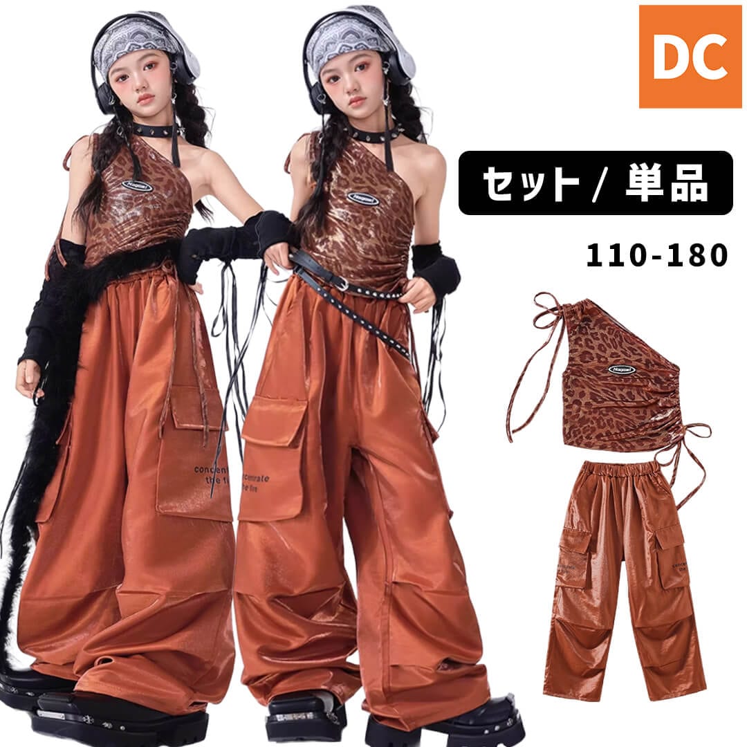 【クリアランスセール】すぐ届く! ガールズHIPHOP ホワイト ブラウン へそ出し ロングパンツ タンクトップ【sale-193】