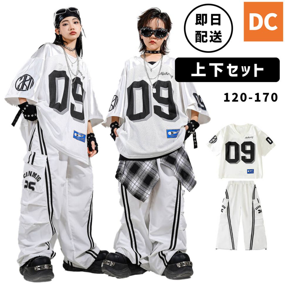 【即日配送】すぐ届く!大人気 ユニフォーム 上下セット HIPHOP衣装 キッズダンス衣装 ユニセックス ブラック モノトーン 短パン 半袖 ハーフパンツ 130~170【dc-1563s】