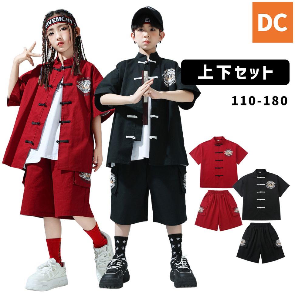 ユニセックス ブラック 半袖 ハーフパンツ 柄パンツ 半袖シャツ ストリート HIPHOP 前開きシャツ 110~180【dc-2111】