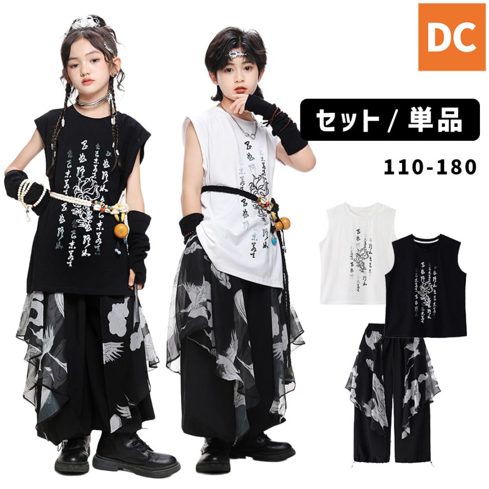 【即日配送】すぐ届く!大人気 ユニフォーム 上下セット HIPHOP衣装 キッズダンス衣装 ユニセックス ブラック モノトーン 短パン 半袖 ハーフパンツ 130~170【dc-1563s】