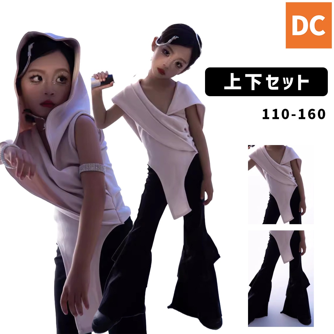ガールズ Jazz ブラック ホワイト フレアパンツ ドレープ ロングパンツ 無地 ボディスーツ風【dc-1937】