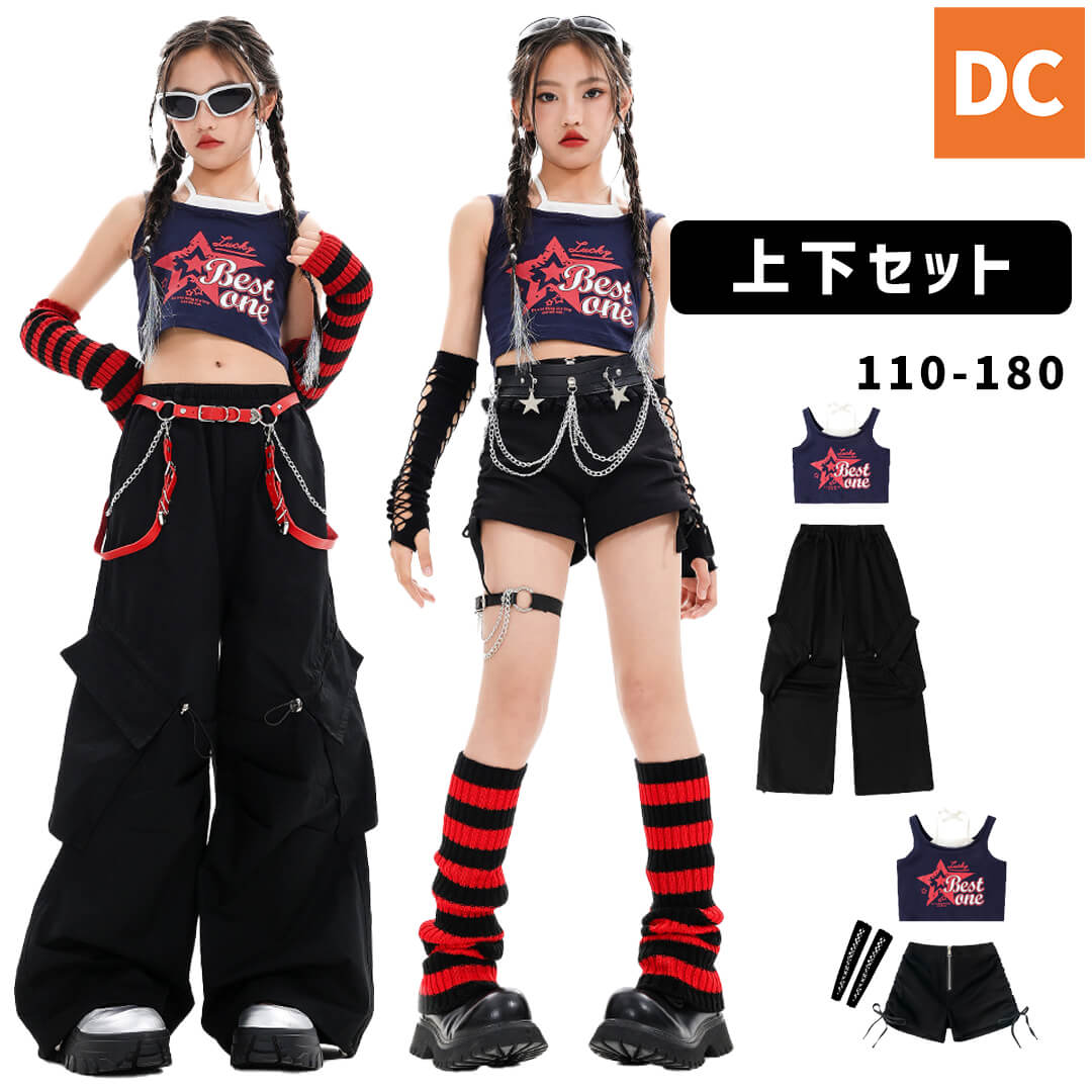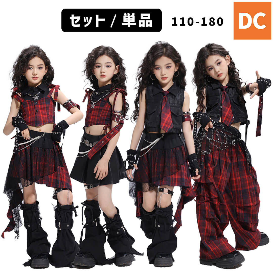 【即日配送】すぐ届く!ガールズ kpop 韓国 へそ出し クロップド丈 チェック 半袖 カーゴパンツ スカート 靴下 レッグウォーマー レッド ブラック かわいい【dc-2050s】