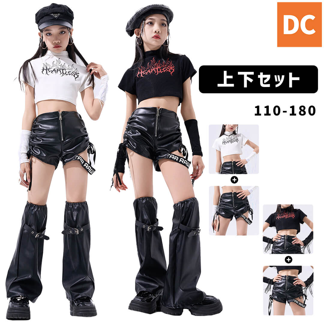 韓国 kpop ブラック ホワイト ショートパンツ アームカバー レッグウォーマー へそ出し フェイクレザー【dc-2194】