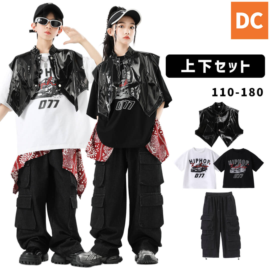 【即日配送】すぐ届く!ガールズ kpop 韓国 ホワイト ブラック モノトーン 半袖トップス アイドル フリルレイヤード ロゴパンツ チーム衣装 【dc-1983s】