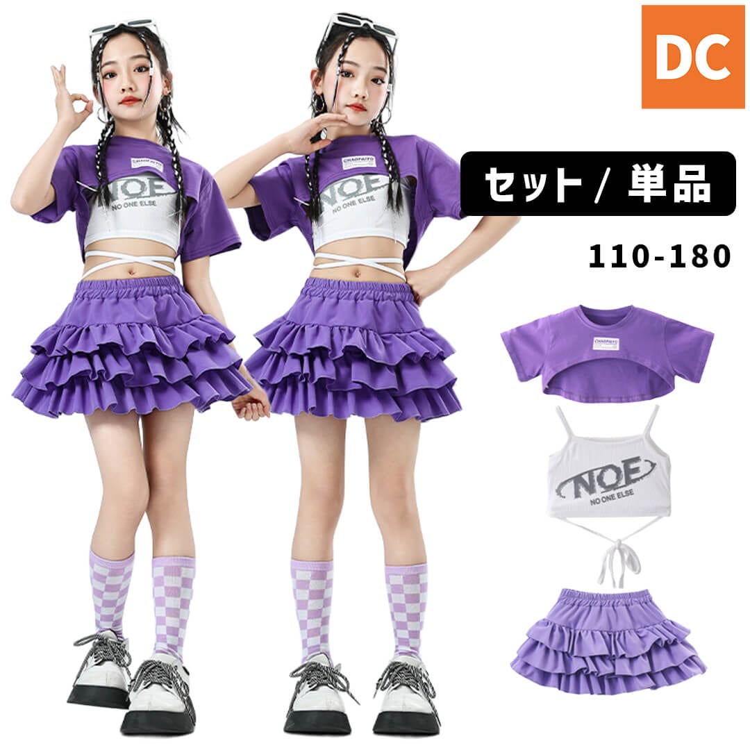 クロップドパープルボリュームフリルスカートセット【dc-2312】