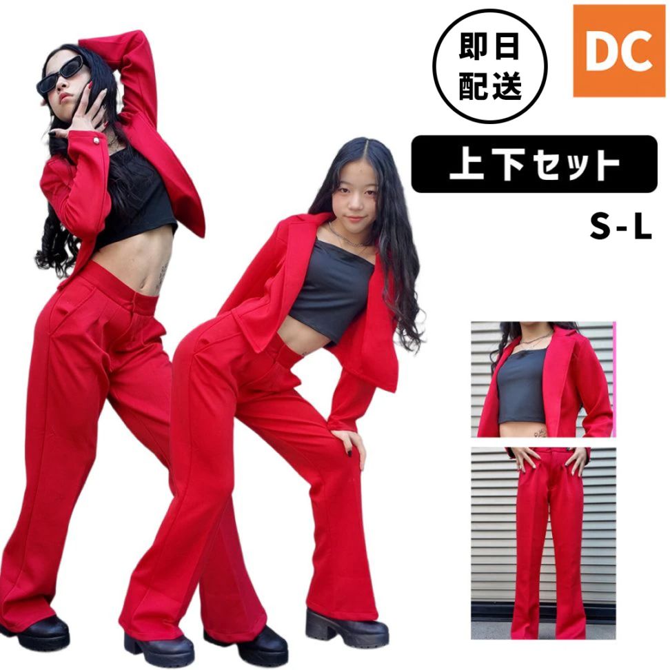 【即日配送】すぐ届く!TEENSレッドクロップドスーツパンツセット【ad-356s】