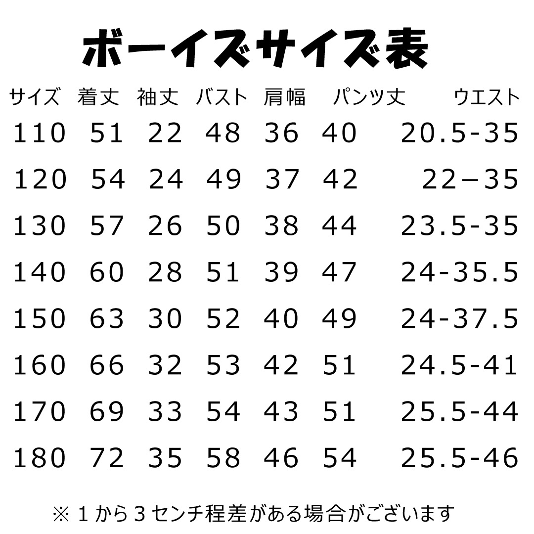 ■ボーイズ商品 170サイズ、180サイズは受注生産納期