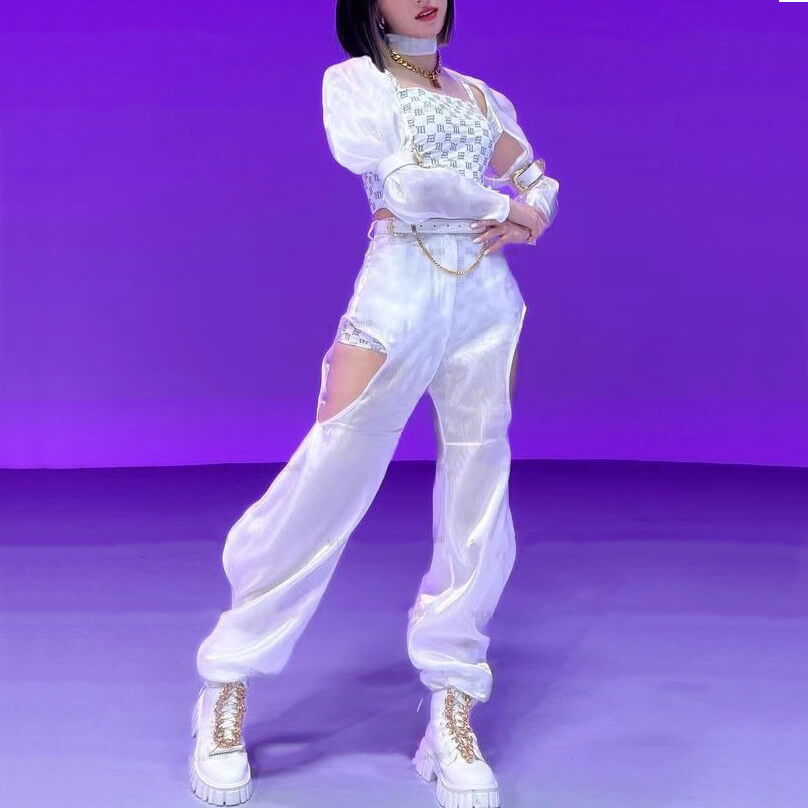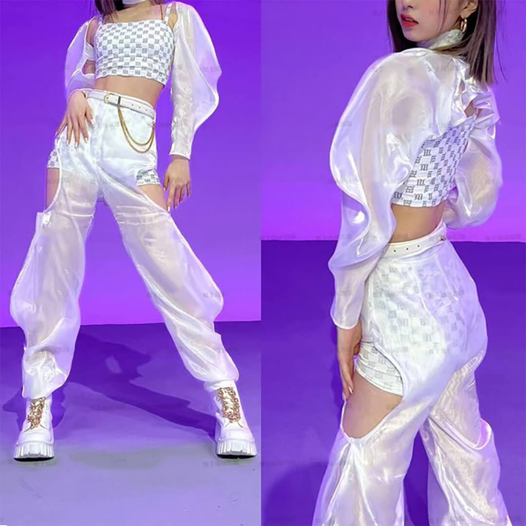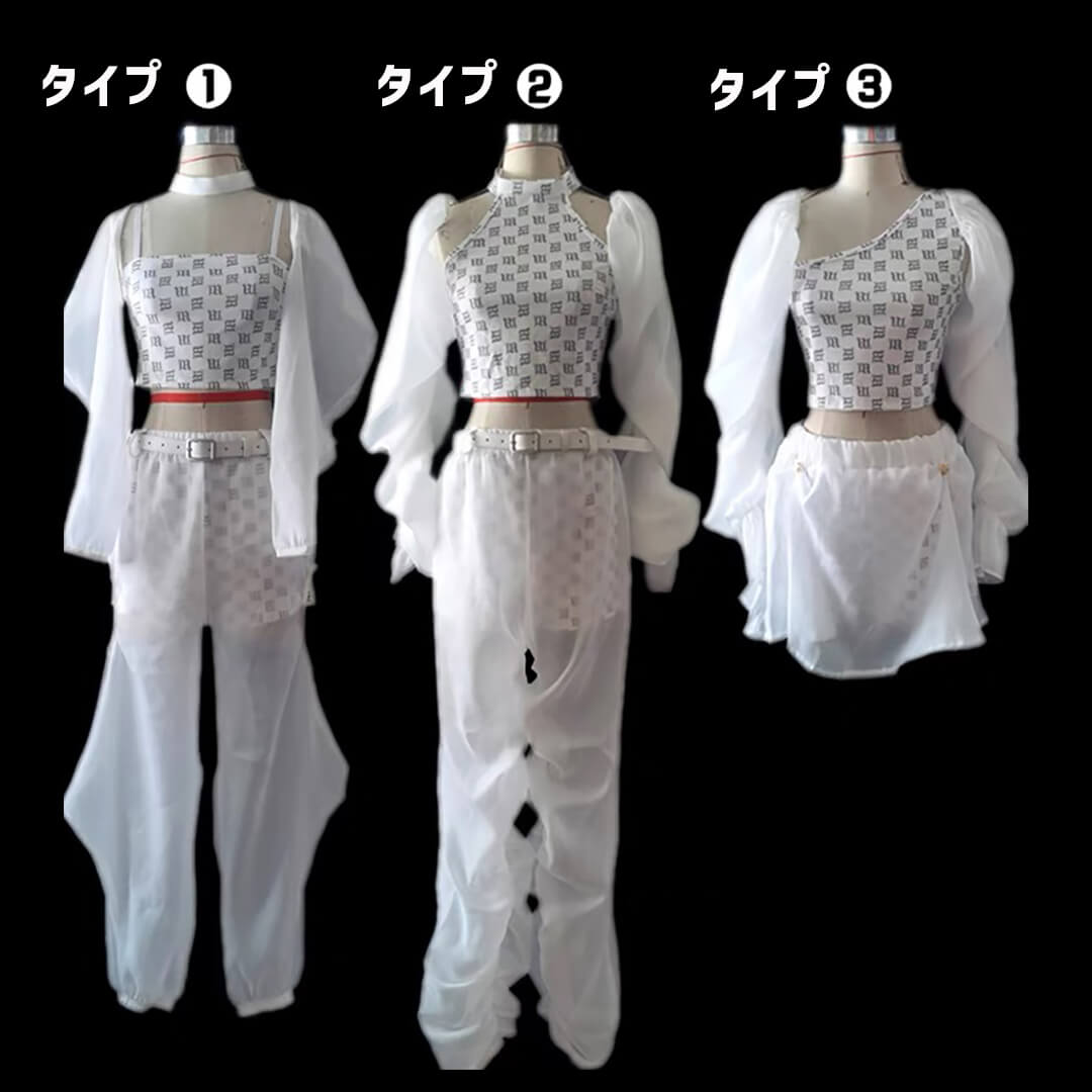 TEENS ティーンズ イベント衣装 レディース ホワイト 韓国 長袖 3タイプ パンツ スカート シースルー K-POP NMIXX S~XL【ad-156】