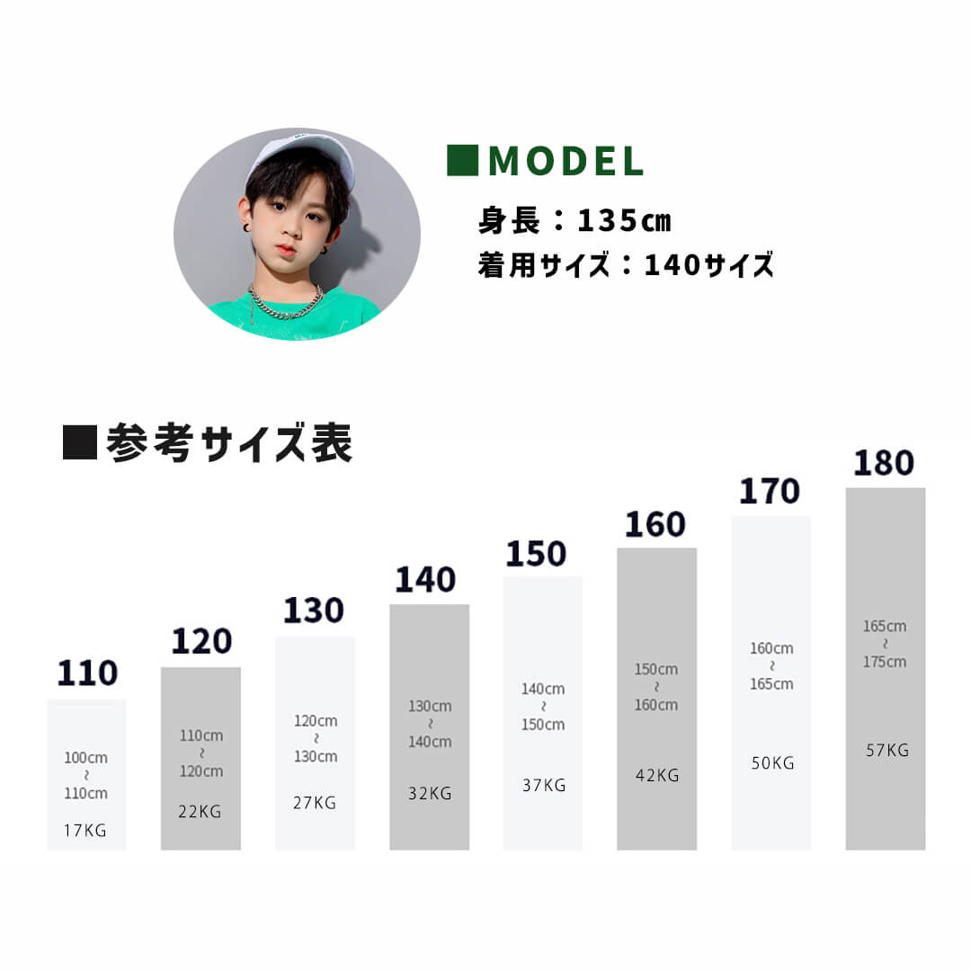 • 144cm/30kg 細身の娘に。160cmの上下セットを購入。ダボッと着たかったので上はイメージ通り、パンツは裾のドローコードで絞らなければ踏むくらいのサイズ感でした。コードが長くて、絞った後結ばないと危ない気がして切りました。  パンツの生地はしっかりめなので、洗濯後は少しシワが気になりました。Tシャツが当たるウエスト部分が少しピンクに色移りしたので、洗濯の時は気をつけたほうがいいです。
