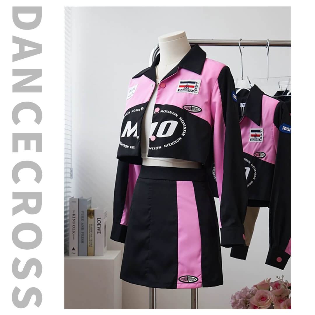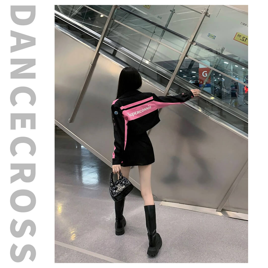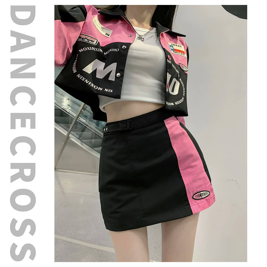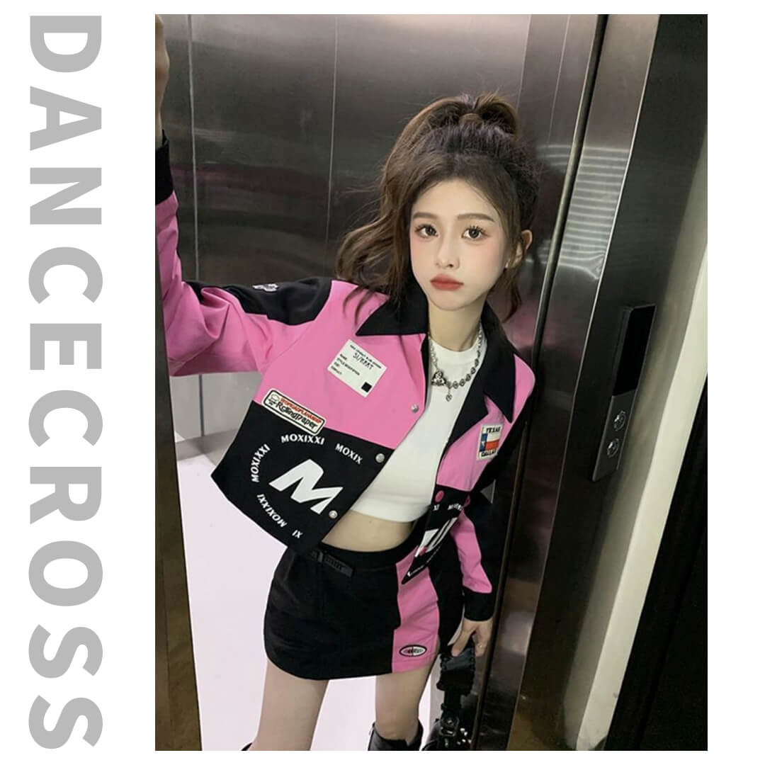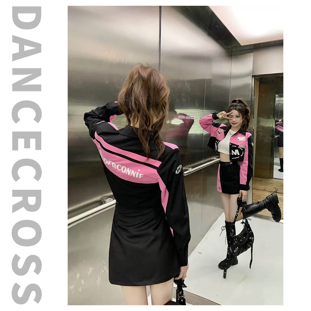 TEENS ティーンズ 韓国 K-POP アイドル 長袖トップス ブラック ピンク スカート ジャケット ショート丈 前開きシャツ S~XL【ad-263】