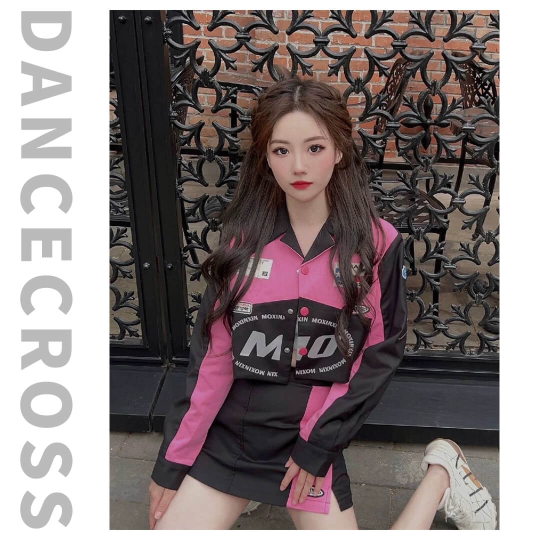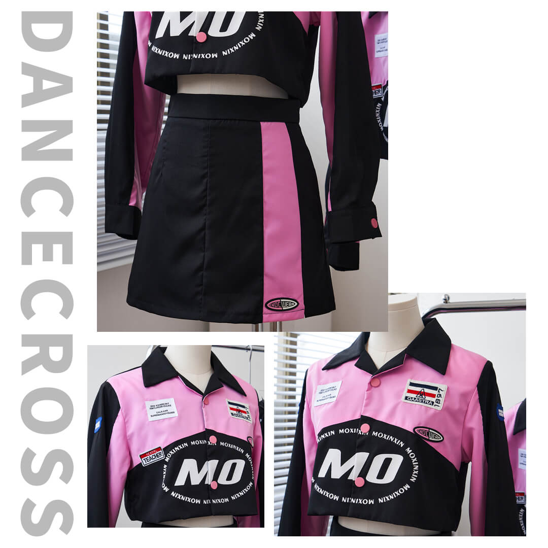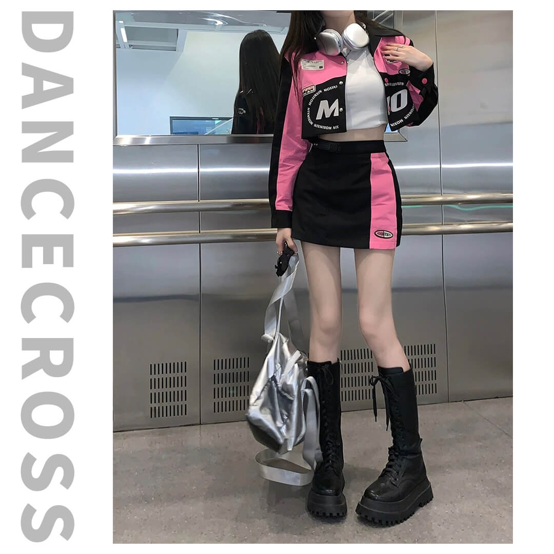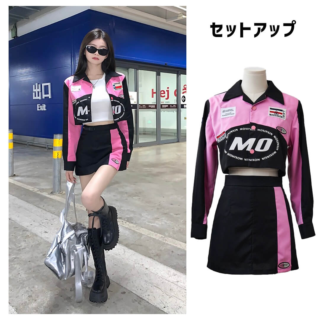 TEENS ティーンズ 韓国 K-POP アイドル 長袖トップス ブラック ピンク スカート ジャケット ショート丈 前開きシャツ S~XL【ad-263】