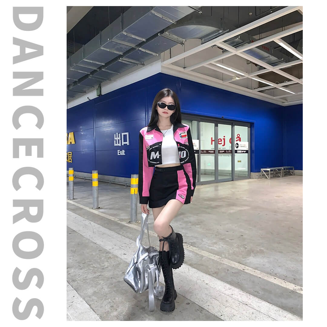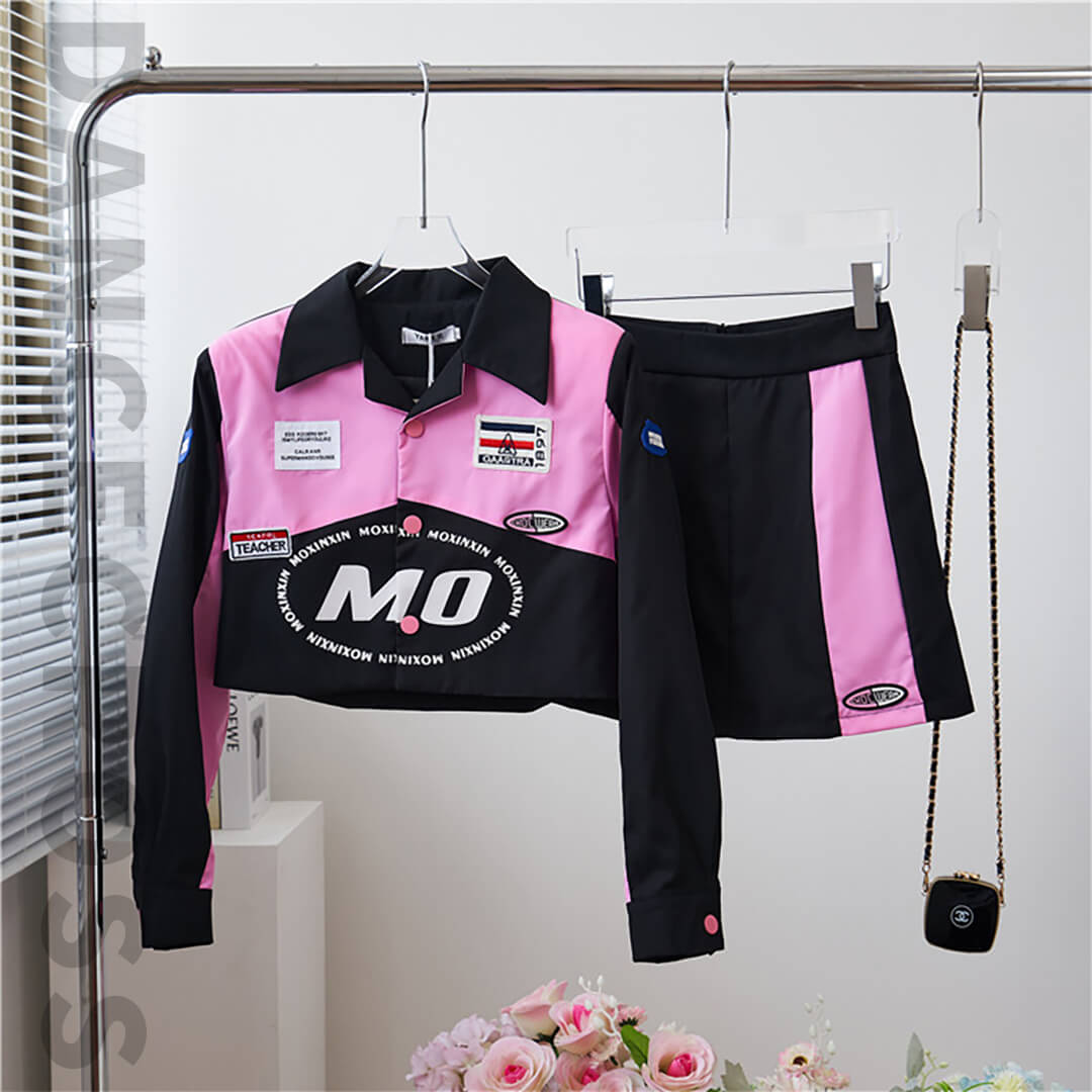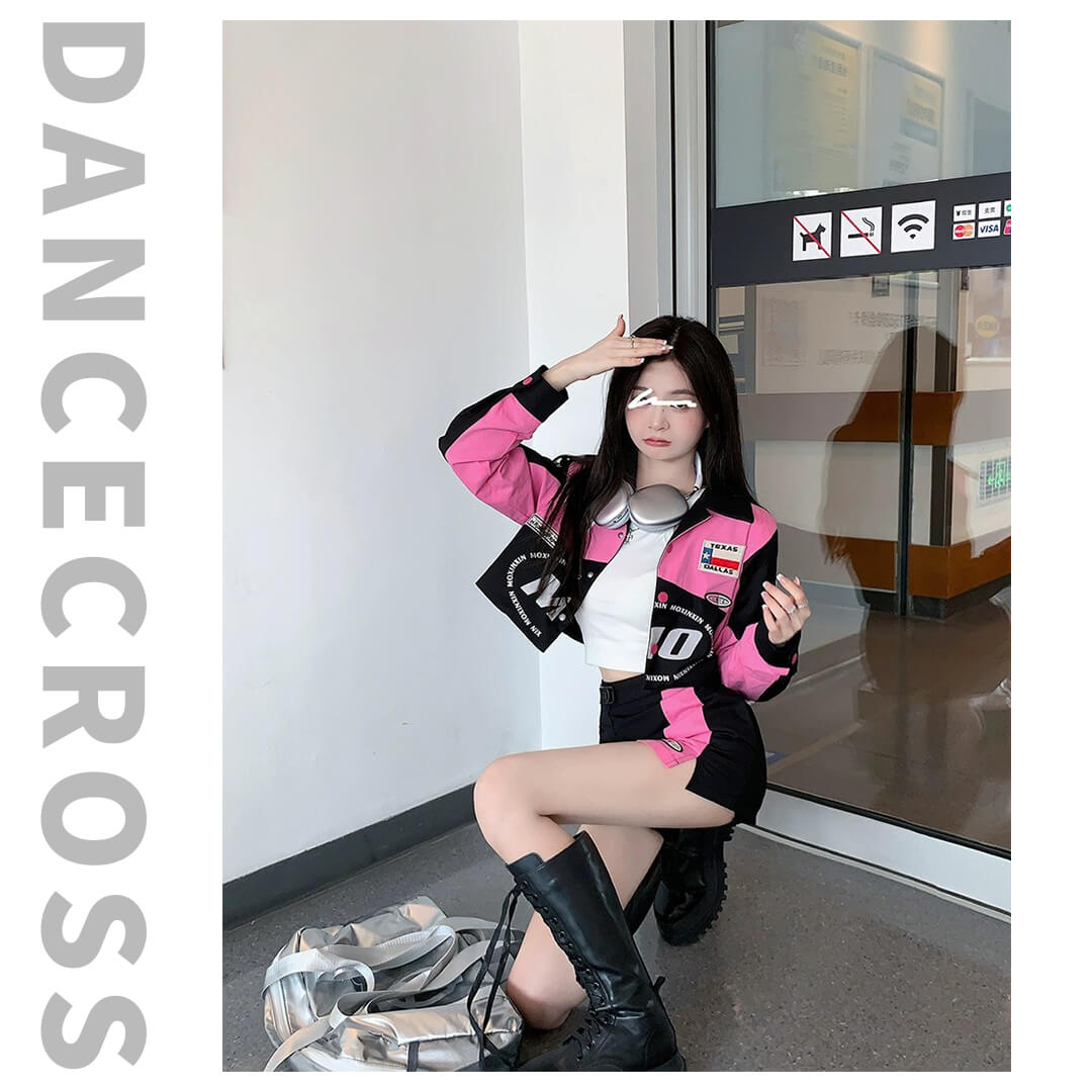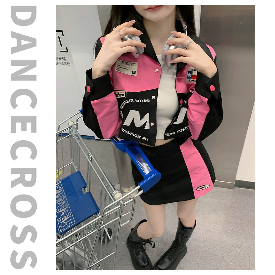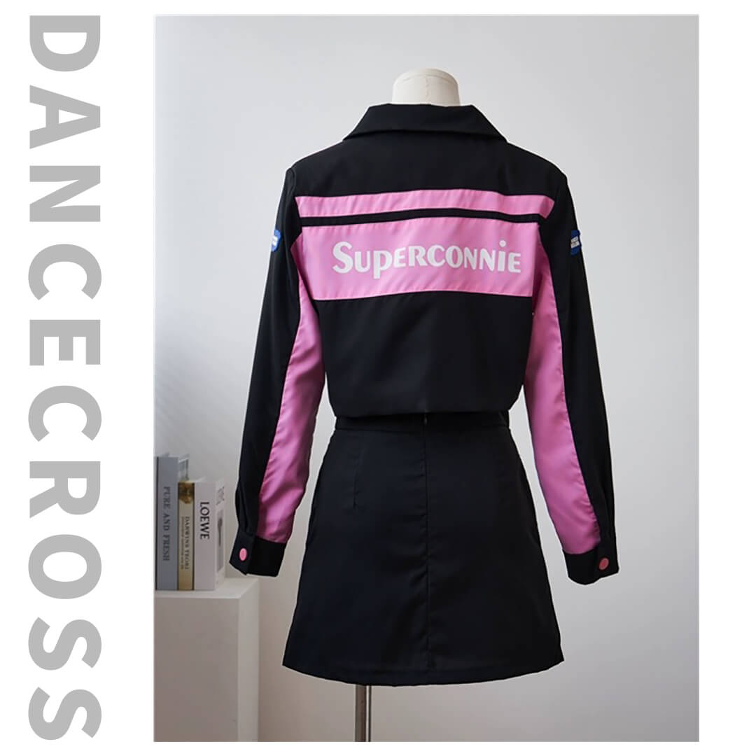 TEENS ティーンズ 韓国 K-POP アイドル 長袖トップス ブラック ピンク スカート ジャケット ショート丈 前開きシャツ S~XL【ad-263】