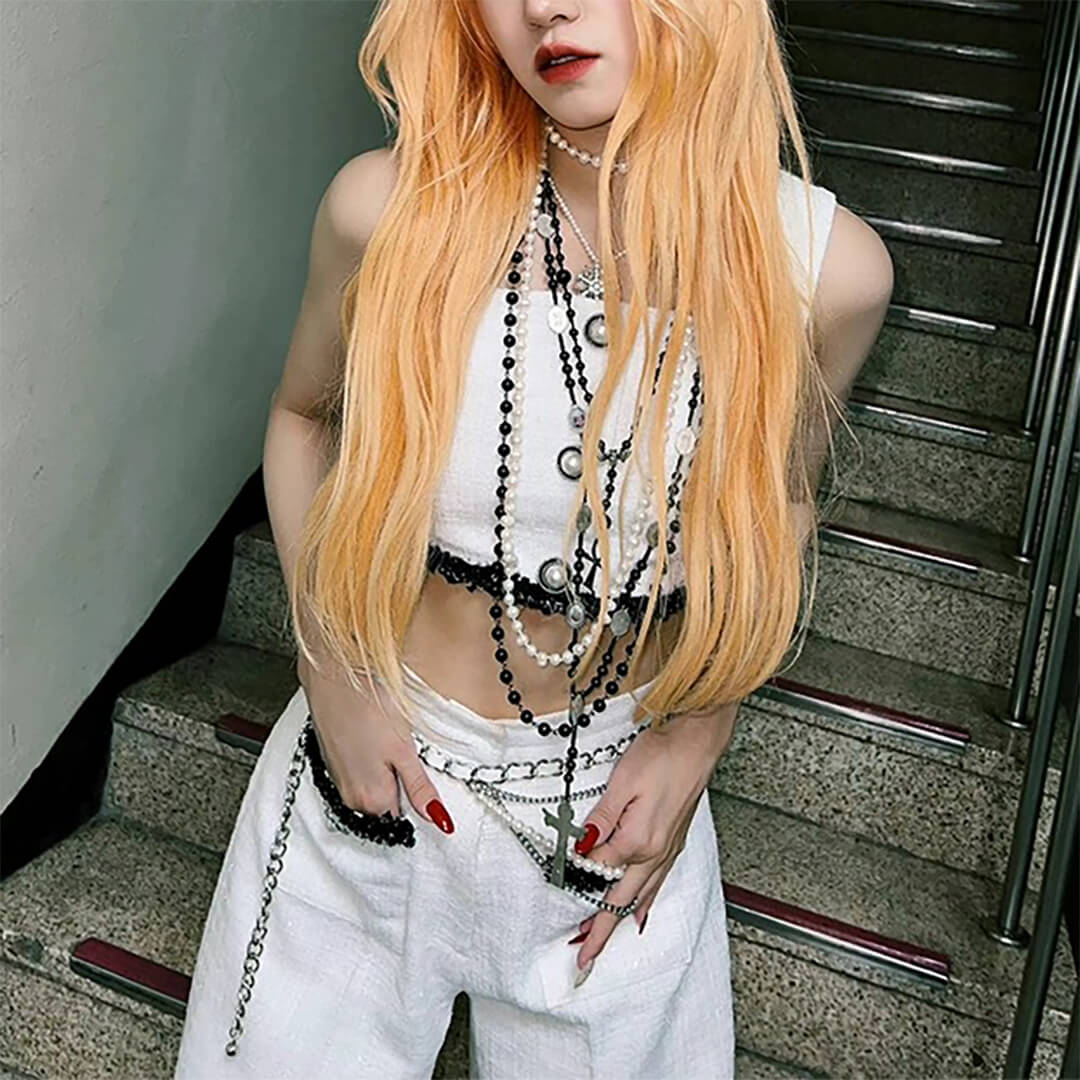 TEENS ティーンズ 韓国 K-POP レディース ホワイト モノトーン アイドル スカート ロングパンツ gidle S~XL【ad-294】