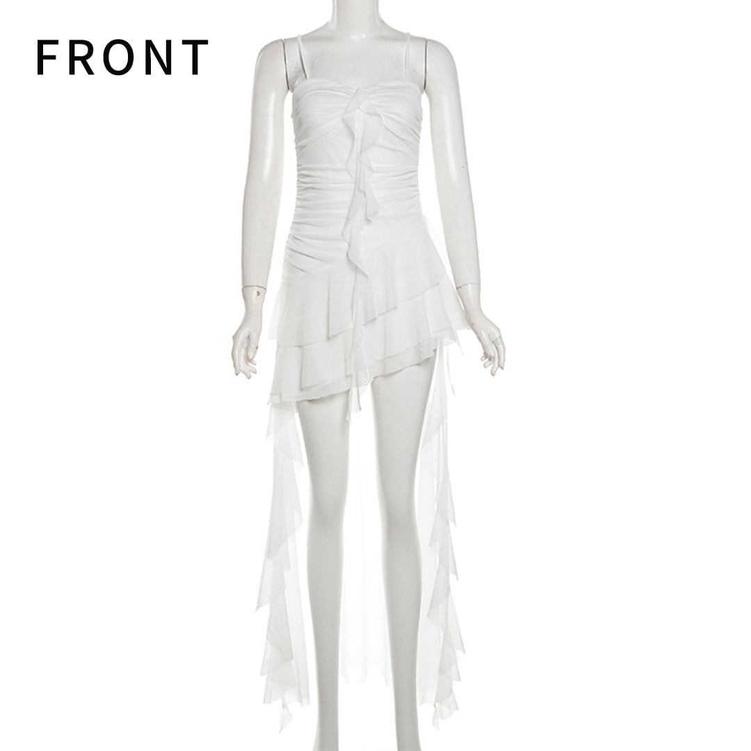 中高生~大人向けサイズのフリル衣装☆ K-POPやジャズ衣装ならこれで決まり! 流行りのシアー素材で、フリルが揺れて大人っぽい&可愛いどちらの演出もぴったり! 前と後ろの長さがアシンメトリーで一着でオシャレに♪ こちらはトップスの後ろにフリルが付いています。 ボトムスついておりませんのでお気を付けください。