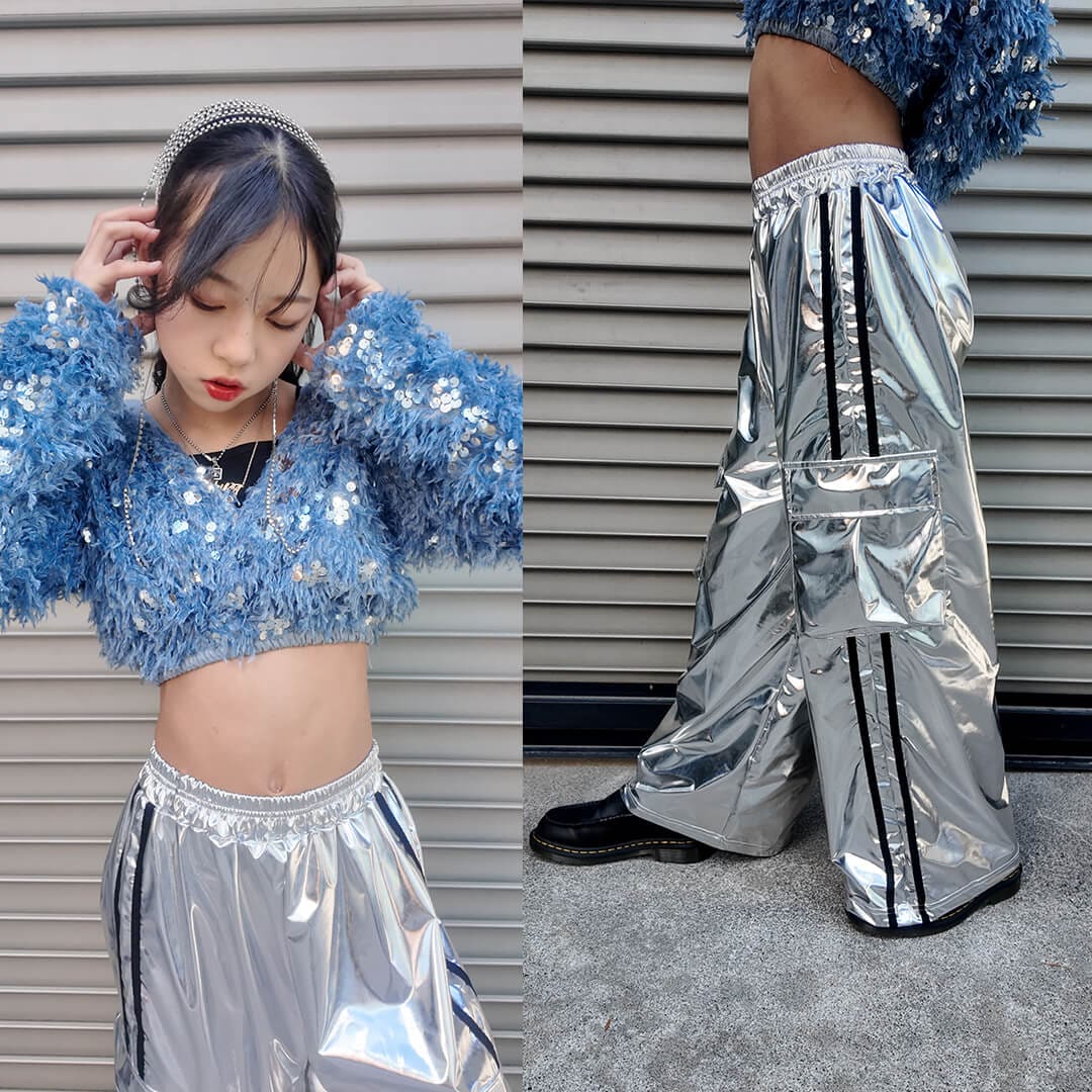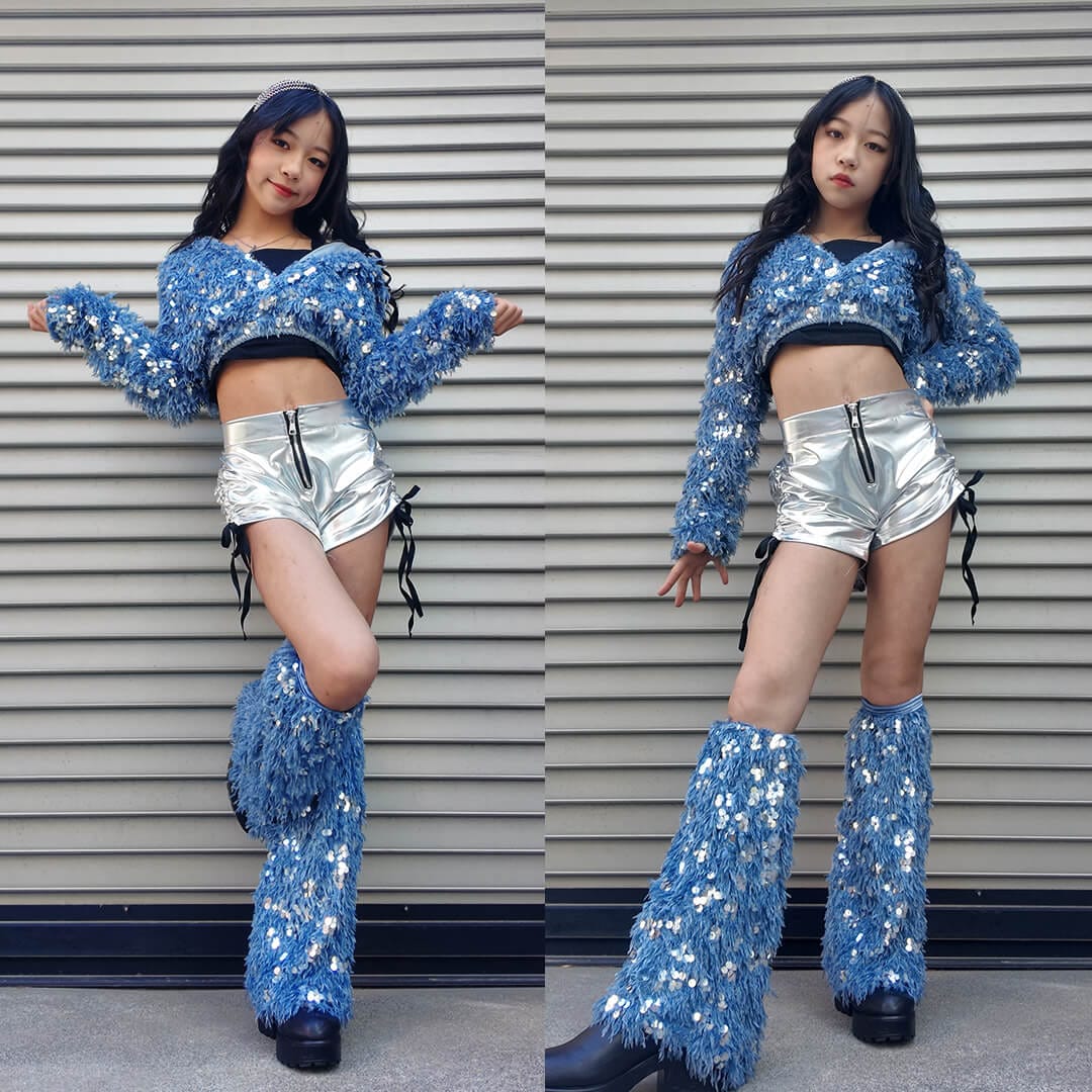 子どもたちのパフォーマンスを華やかに彩るこの衣装は、K-POPファン必見の特別なアイテムです。スパンコールの輝きがステージ映えし、目を引く存在感を放ちます。これを着て、あなたのお子様がその中心に立つ姿を想像してみてください。