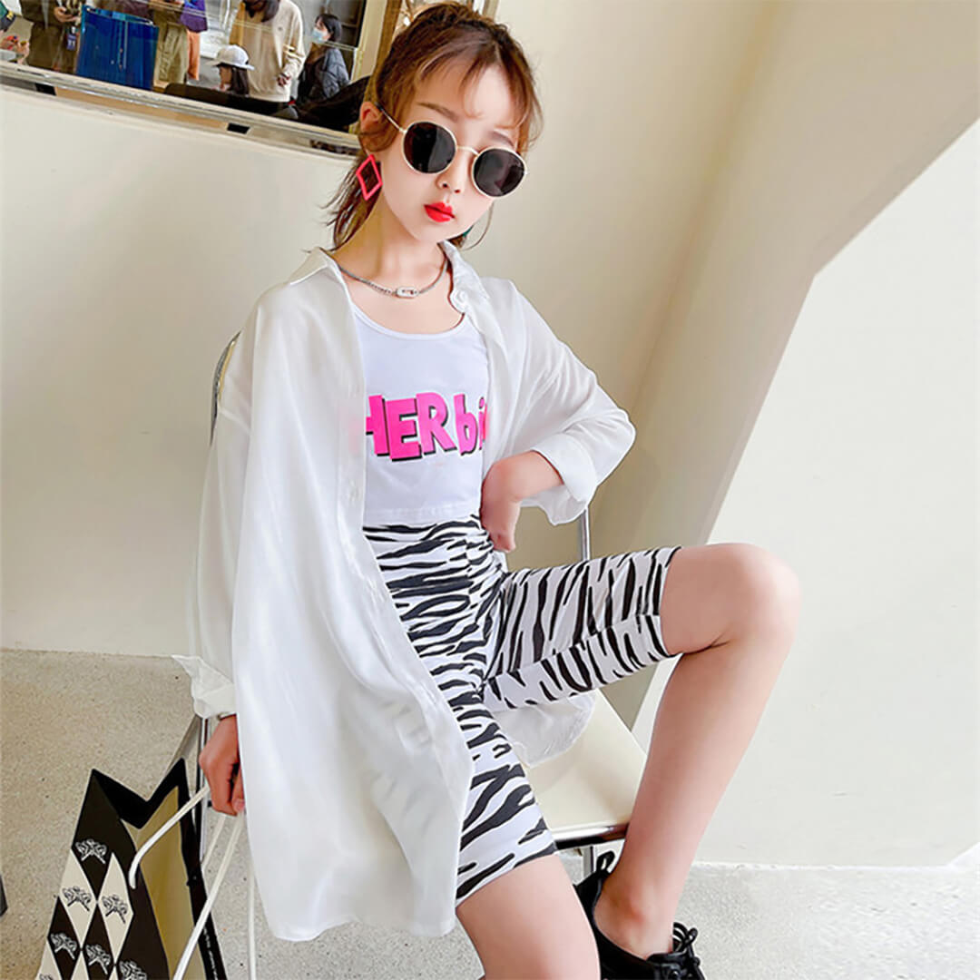 キッズ シャツ単品 長袖 テロテロ ブラック 前開きシャツ ホワイト アウター K-pop 韓国 oversize HIPHOP 110-170【t-142】