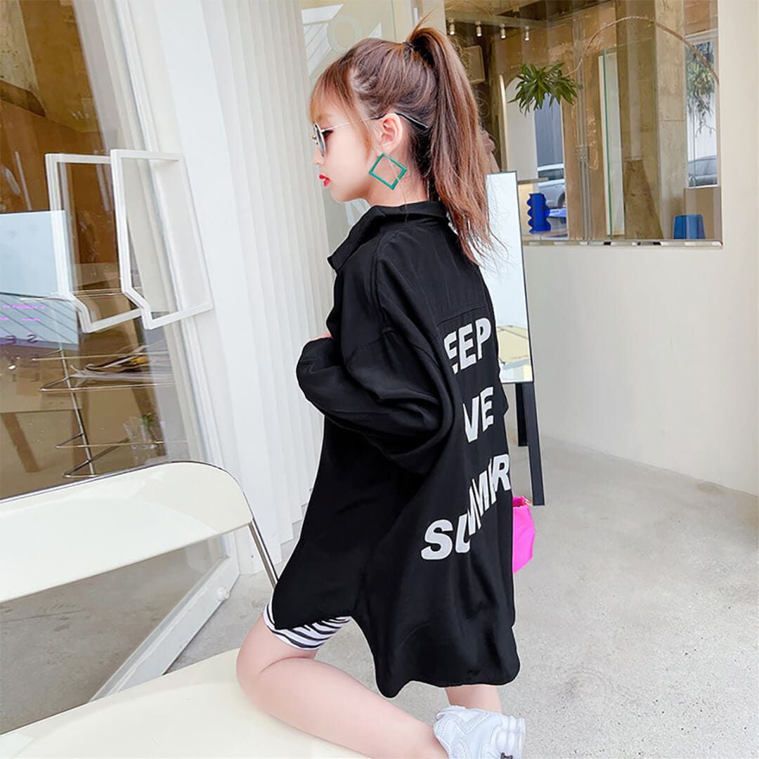 こちらの長袖シャツは、イマドキのK-POPスタイルにぴったりな一枚です。オーバーサイズデザインで、ゆったりとした着心地を実現しました。お子様が活発に動いても、ストレスフリーに楽しむことができます。
