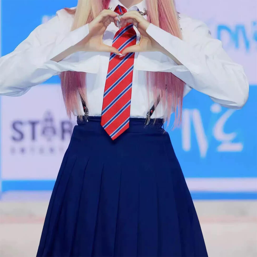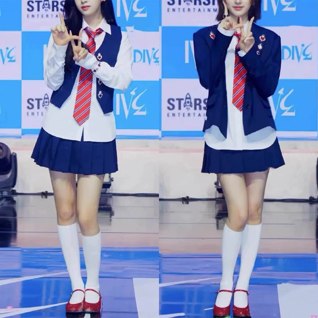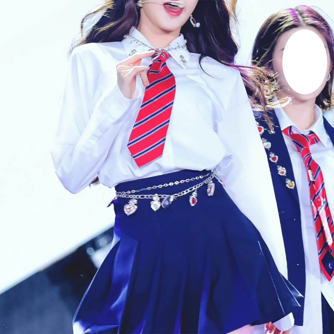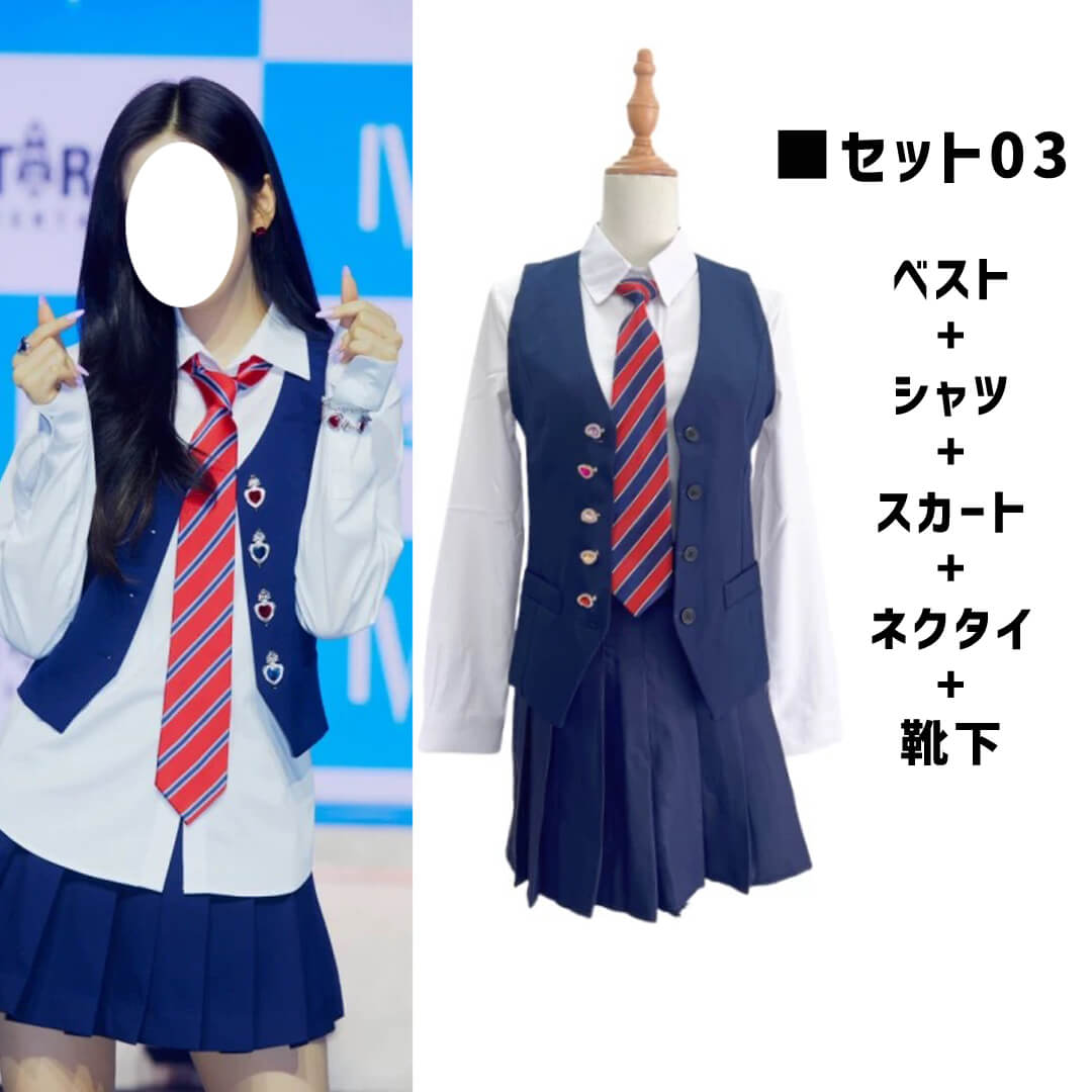 kpop アイドル ホワイト ブルー ネイビー スカート 制服風 前開きシャツ ジャケット ベスト ネクタイ チェーン【ad-333】