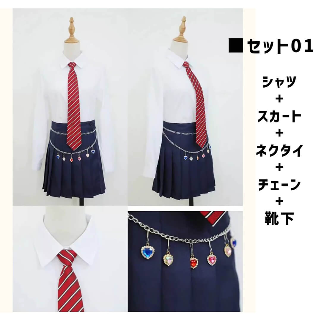 ■セット01:シャツ+スカート+ネクタイ+チェーン+靴下