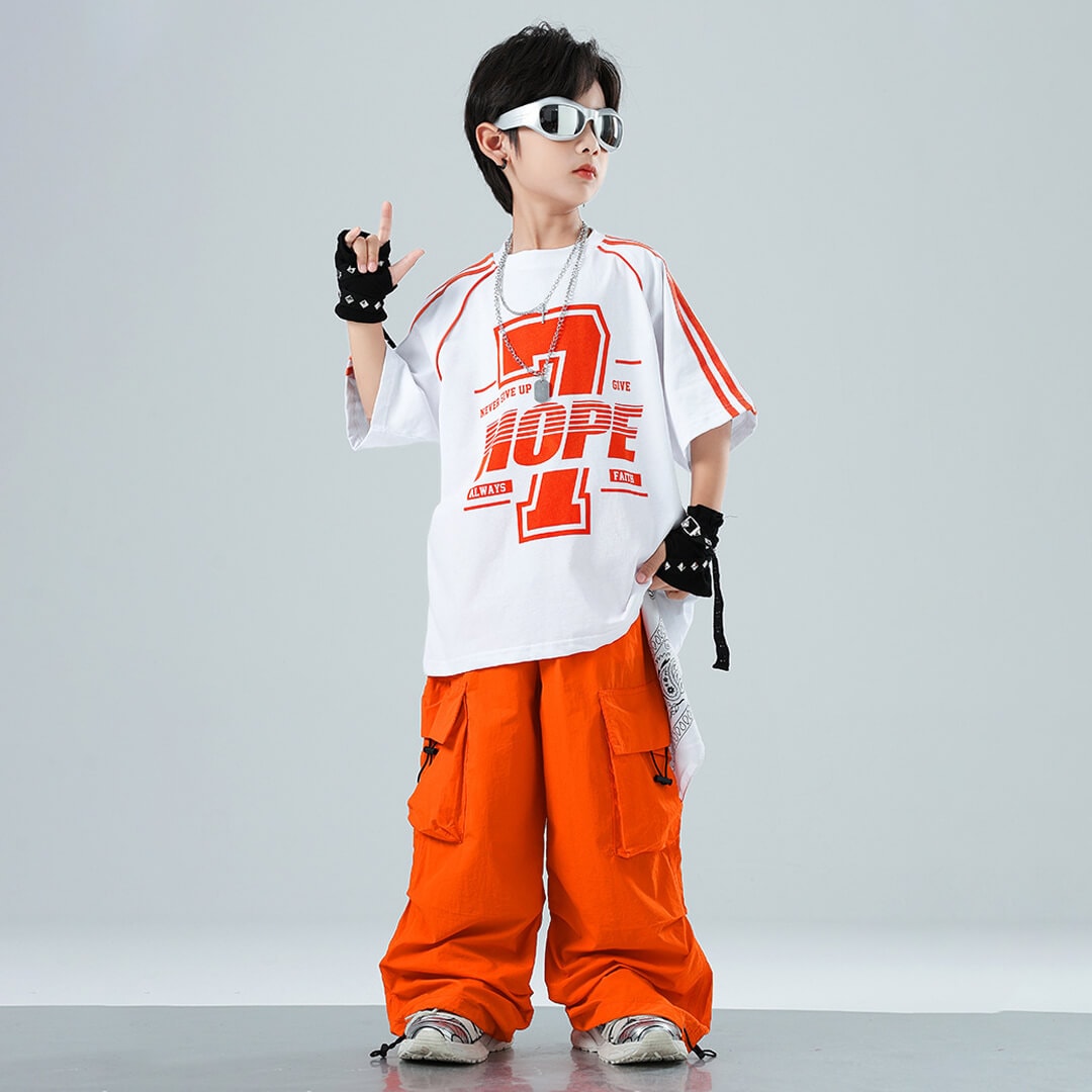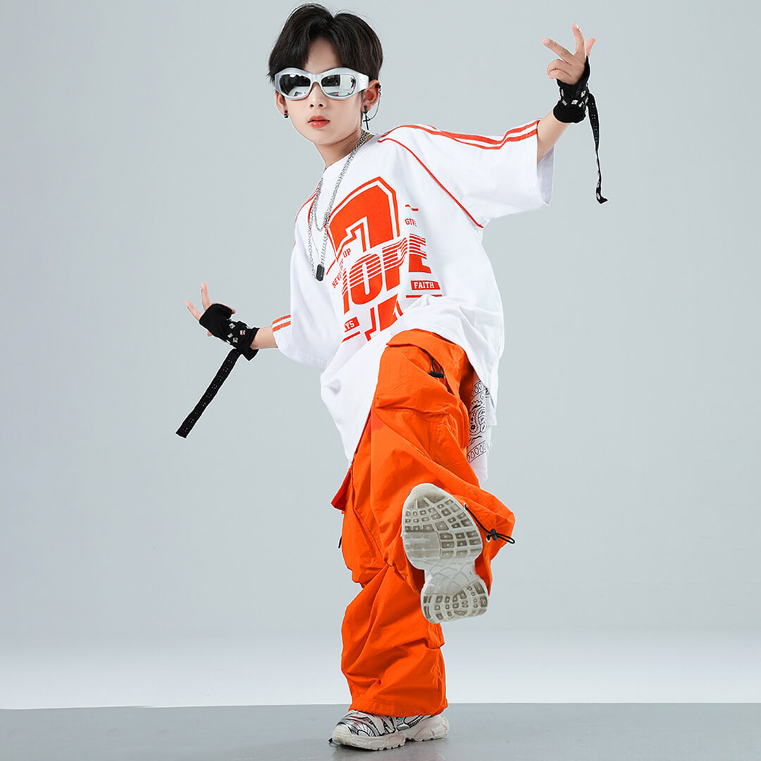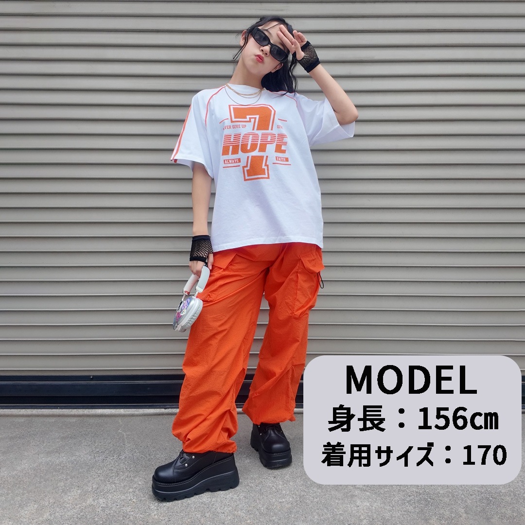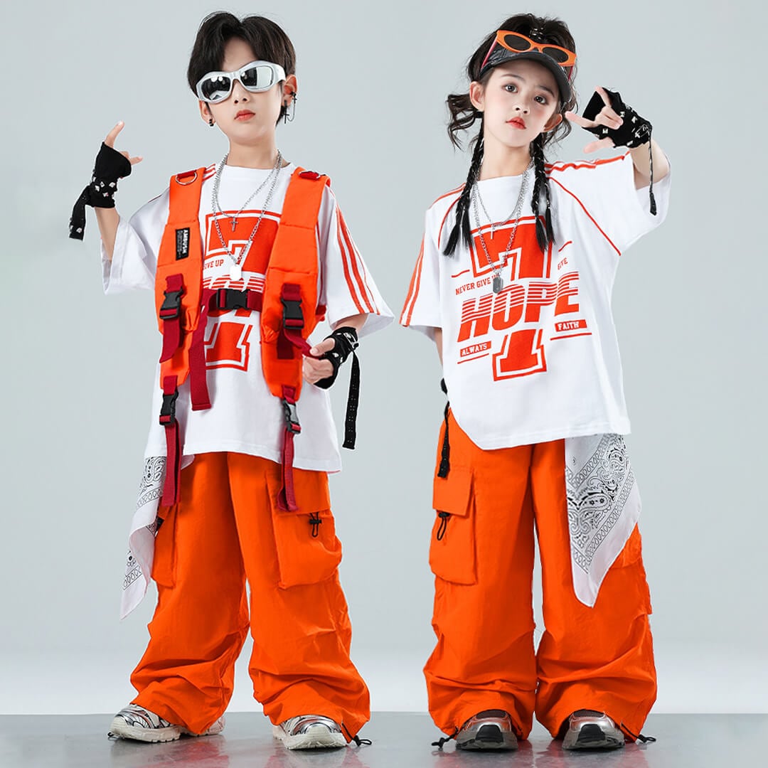 ユニセックス ユニフォーム オレンジ ホワイト ベスト 半袖 ストリート ロングパンツ カーゴパンツ ロンT オーバーサイズ【dc-2077】