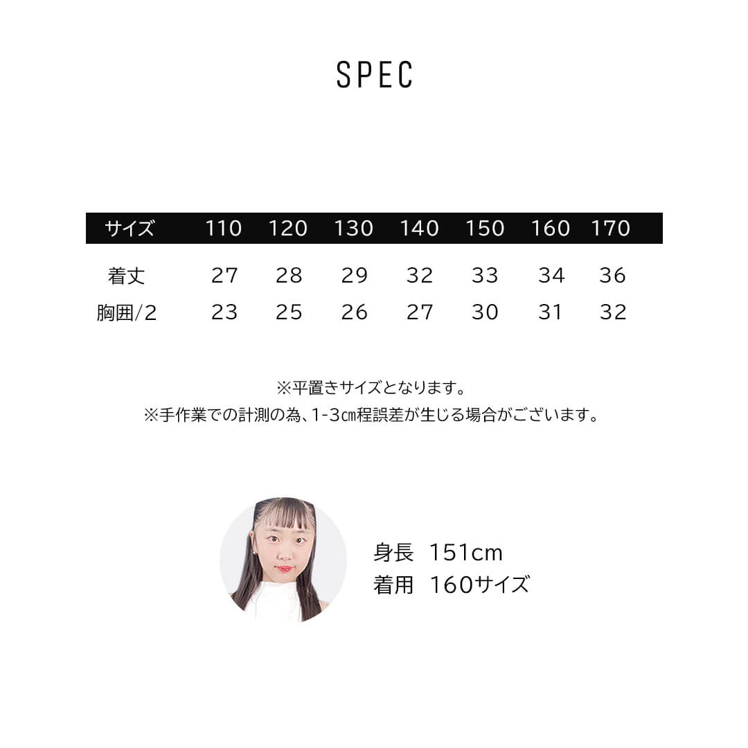 • 体重29.0キロ 身長122センチのぽっちゃり体型です。 普段は120か130着ています。 胸囲63で140センチ選びました。 肩紐は完全に解けるので、結び方で調整できそうです。 デニム生地自体は伸びる生地ではないですが、 後ろにゴムが入ってるので伸びます。 130だとおへそは隠れるぐらいで、腕をあげるとおへそが見える 140だと腕をあげてもおへそは見えず、 脇の下のお肉がはみ出ることもなかったです。 スマートな子であれば実際来ているサイズでも 大丈夫な気がします。 サイズ表記の着丈は肩紐をいれず、 デニム生地から下までとのことでしたが、 サイズ表記は実際のものより 8センチぐらい大きく書かれていました。 デニム下の白の生地は伸縮性あり、 Tシャツのような薄め生地です。 サイズ表記と もう少し詳しく写真を載せていただけると 選びやすいかなとおもいました。