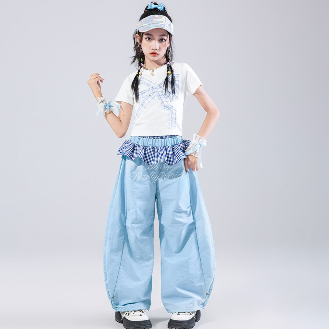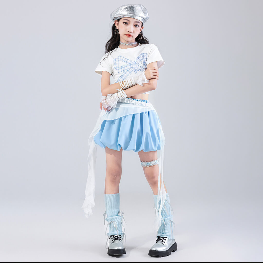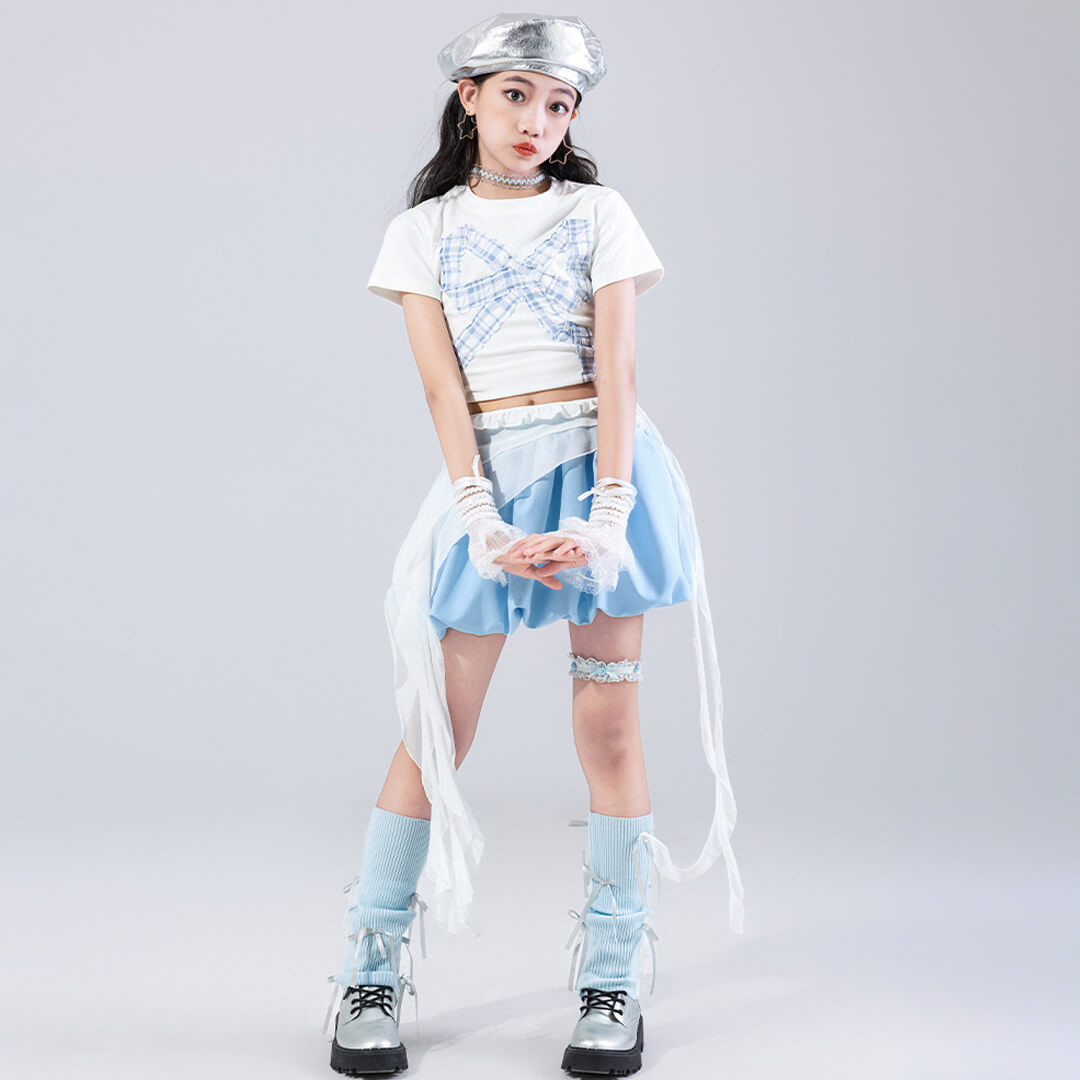 爽やかなスカイブルーとホワイトの組み合わせが魅力のガールズ衣装。