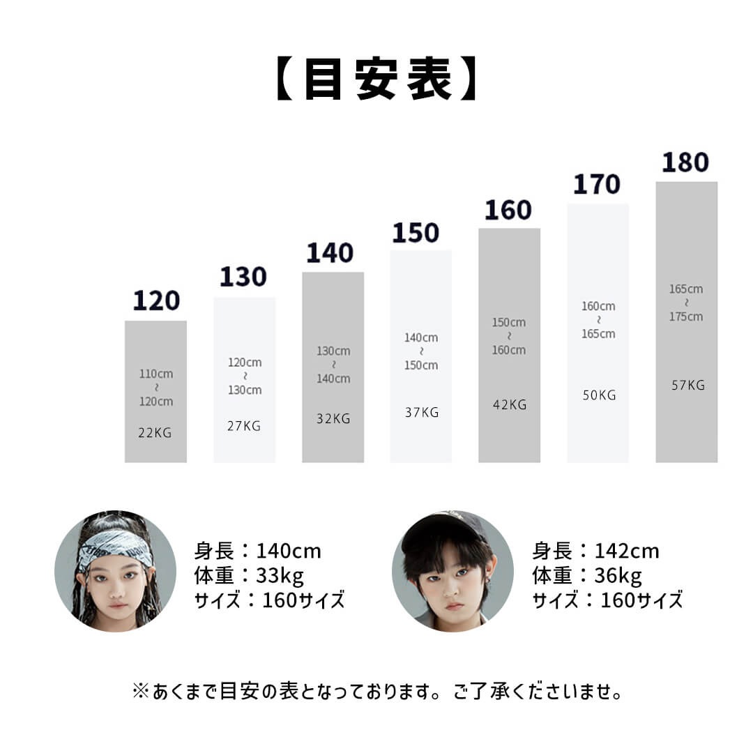• 144cm/30kg 細身の娘に。160cmの上下セットを購入。ダボッと着たかったので上はイメージ通り、パンツは裾のドローコードで絞らなければ踏むくらいのサイズ感でした。コードが長くて、絞った後結ばないと危ない気がして切りました。  パンツの生地はしっかりめなので、洗濯後は少しシワが気になりました。Tシャツが当たるウエスト部分が少しピンクに色移りしたので、洗濯の時は気をつけたほうがいいです。
