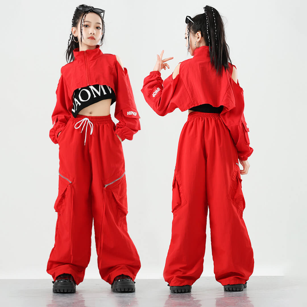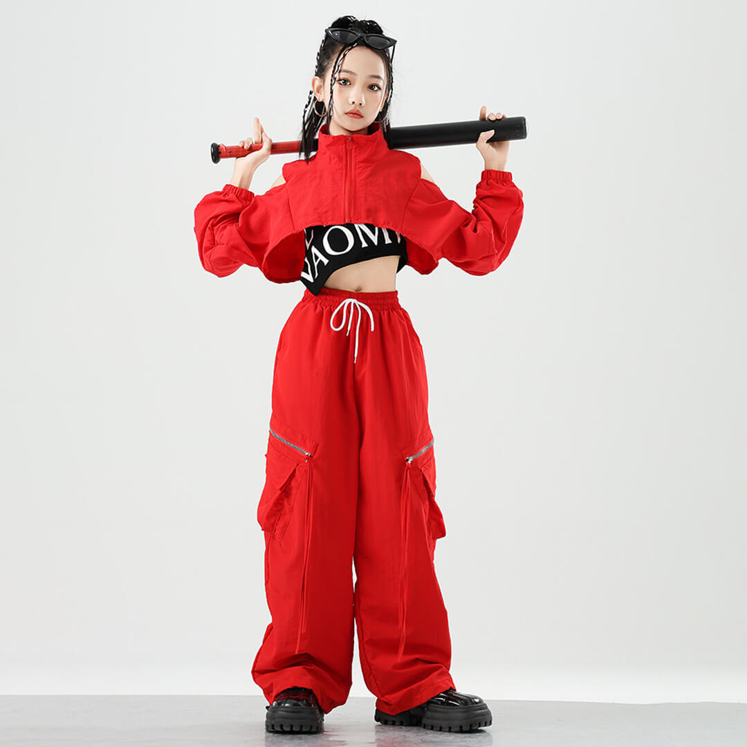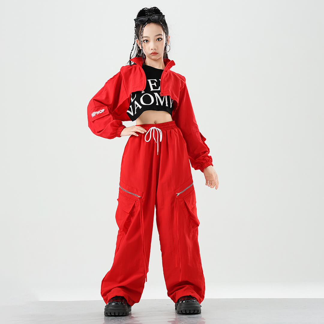 クロップド丈のジャケットが映えるオールレッドのセットアップ衣装