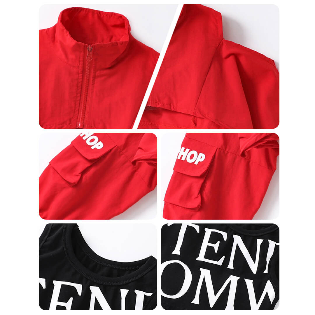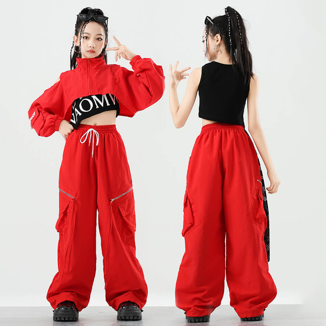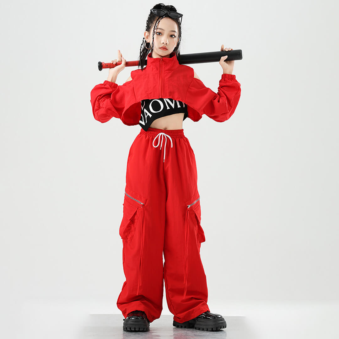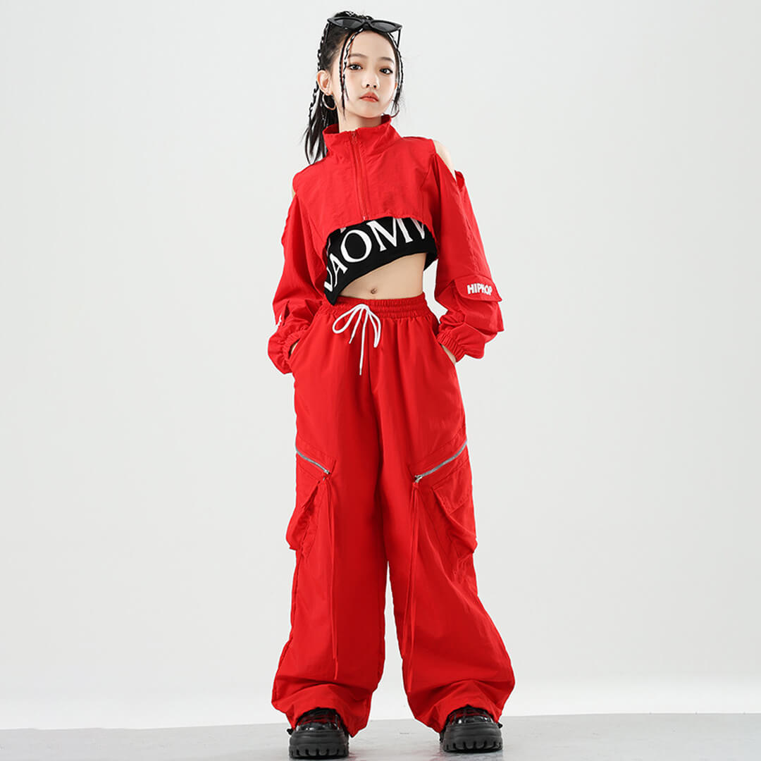 クロップド丈のジャケットが映えるオールレッドのセットアップ衣装