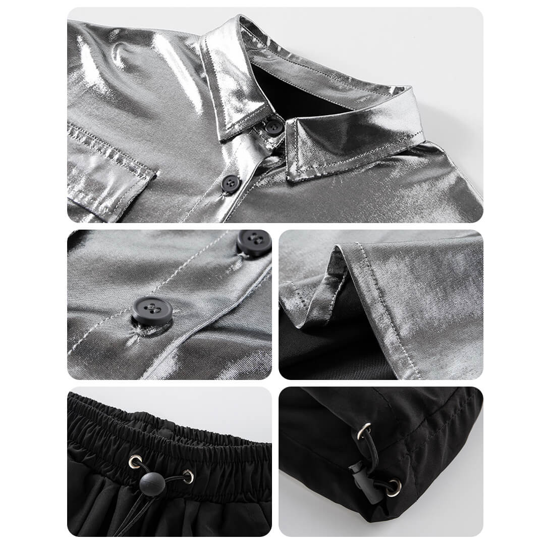 メタル生地のクロップド丈ジャケットセットアップ