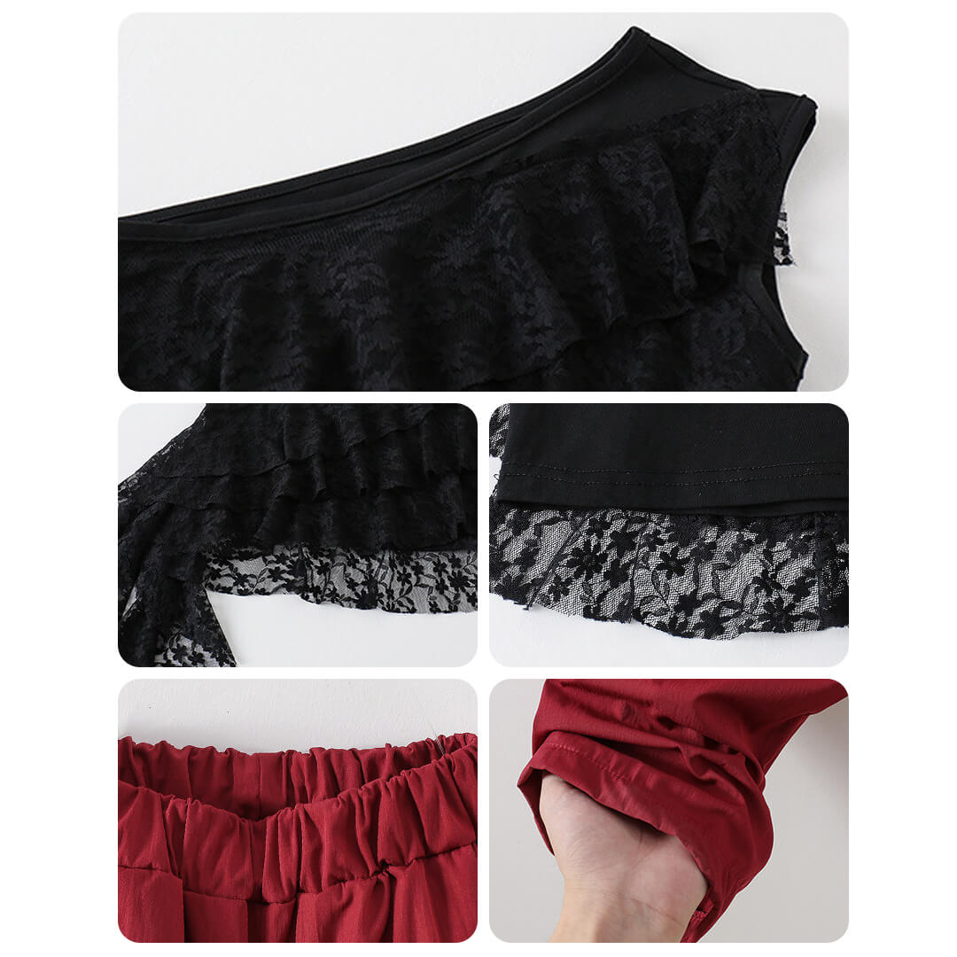 【期間限定SALE】3/19 12時まで!アシメレースバーガンディパンツセット【dc-2302】