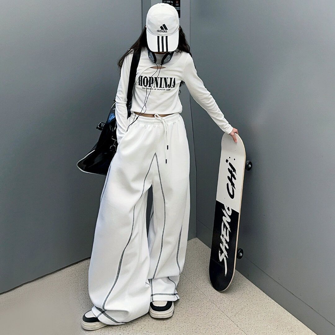 デニム下の白の生地は伸縮性あり、