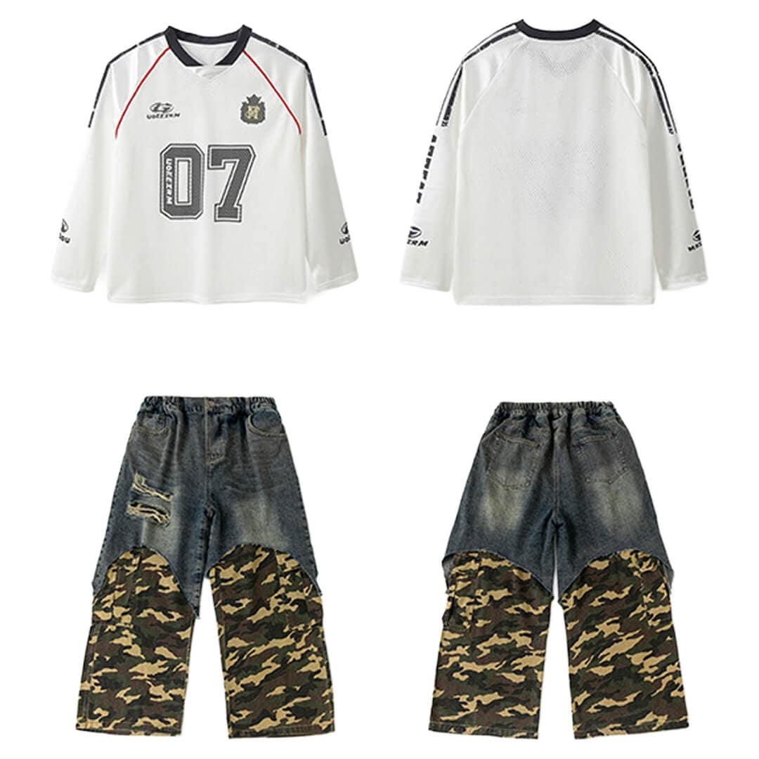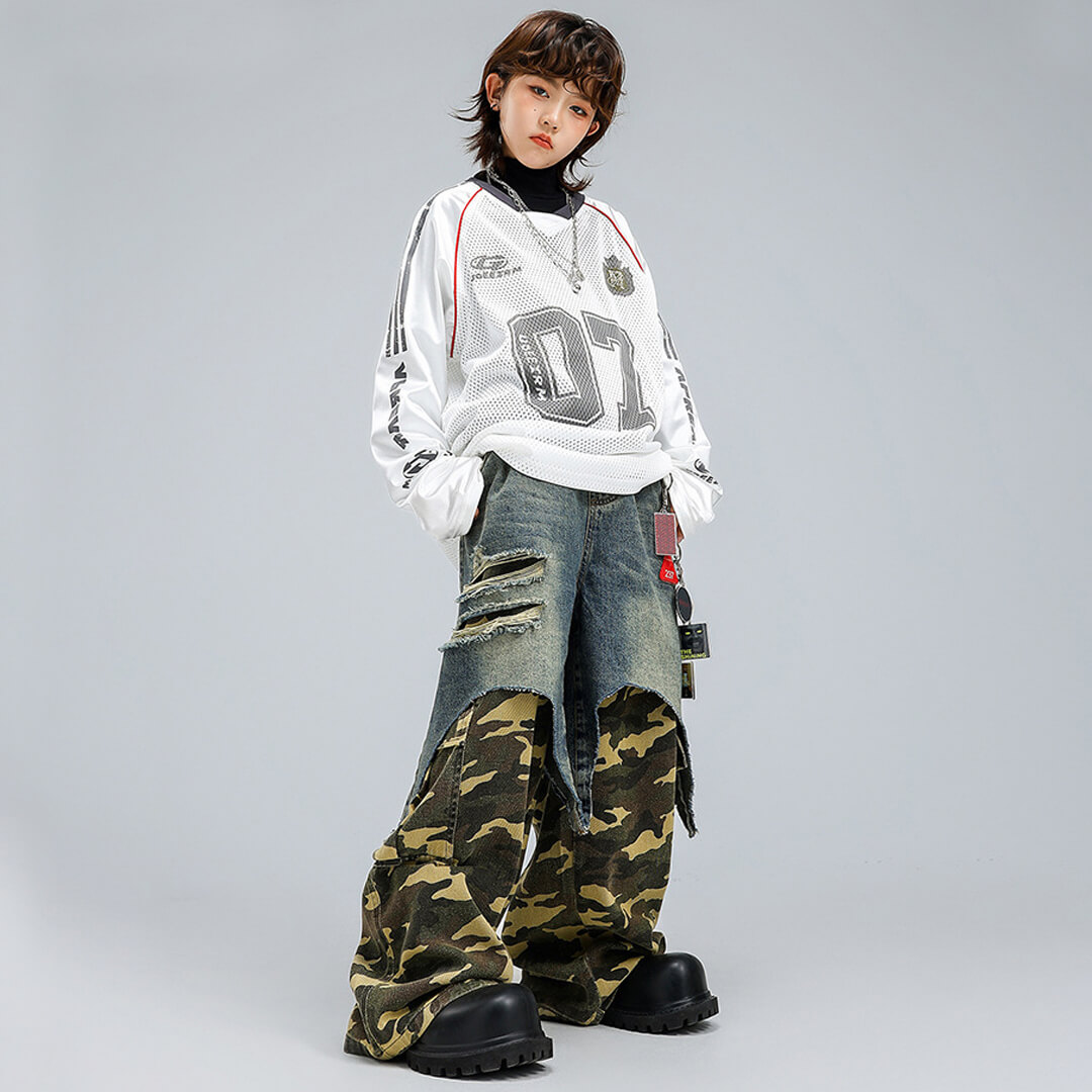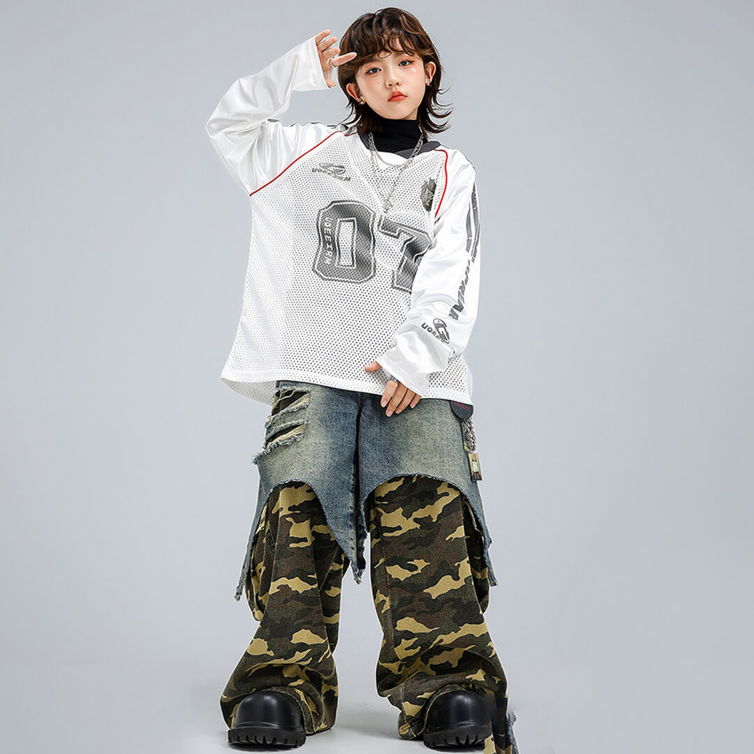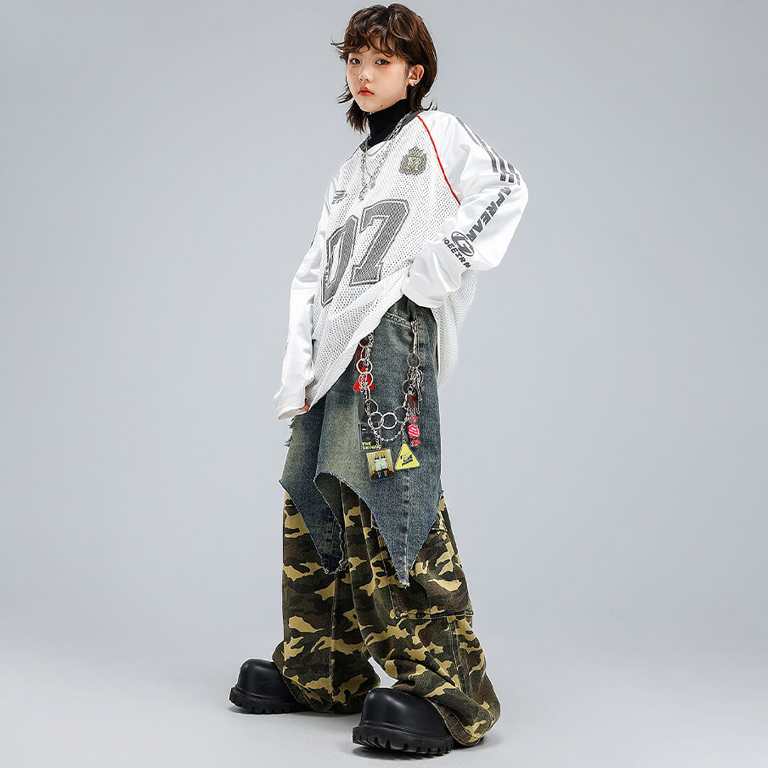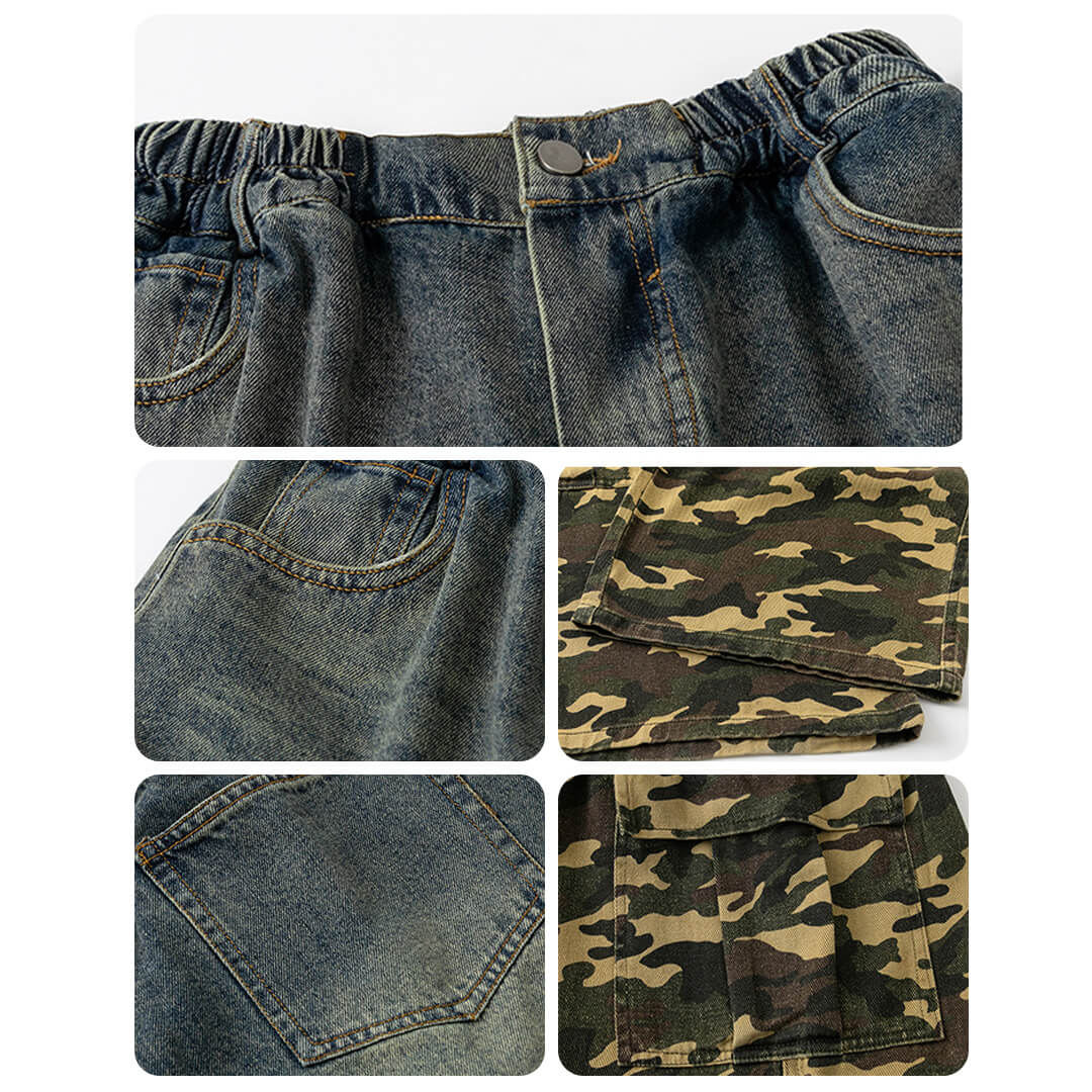 デニム下の白の生地は伸縮性あり、
