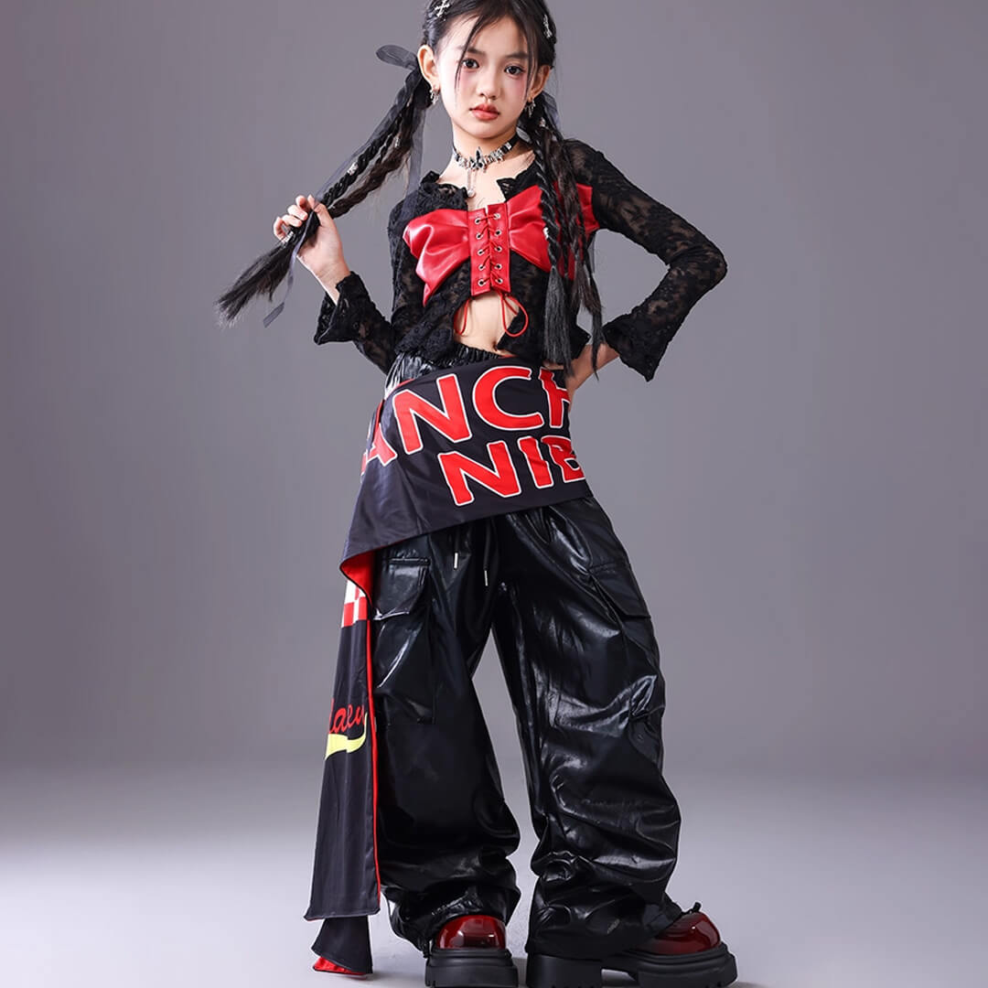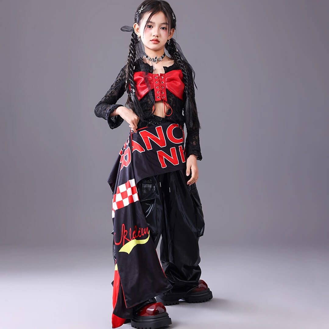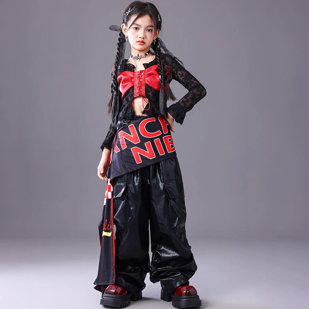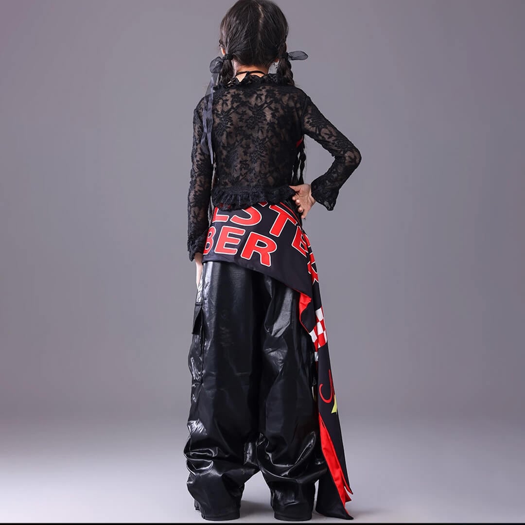 ■Eセット:トップス+ブラックパンツ+ロゴ腰巻