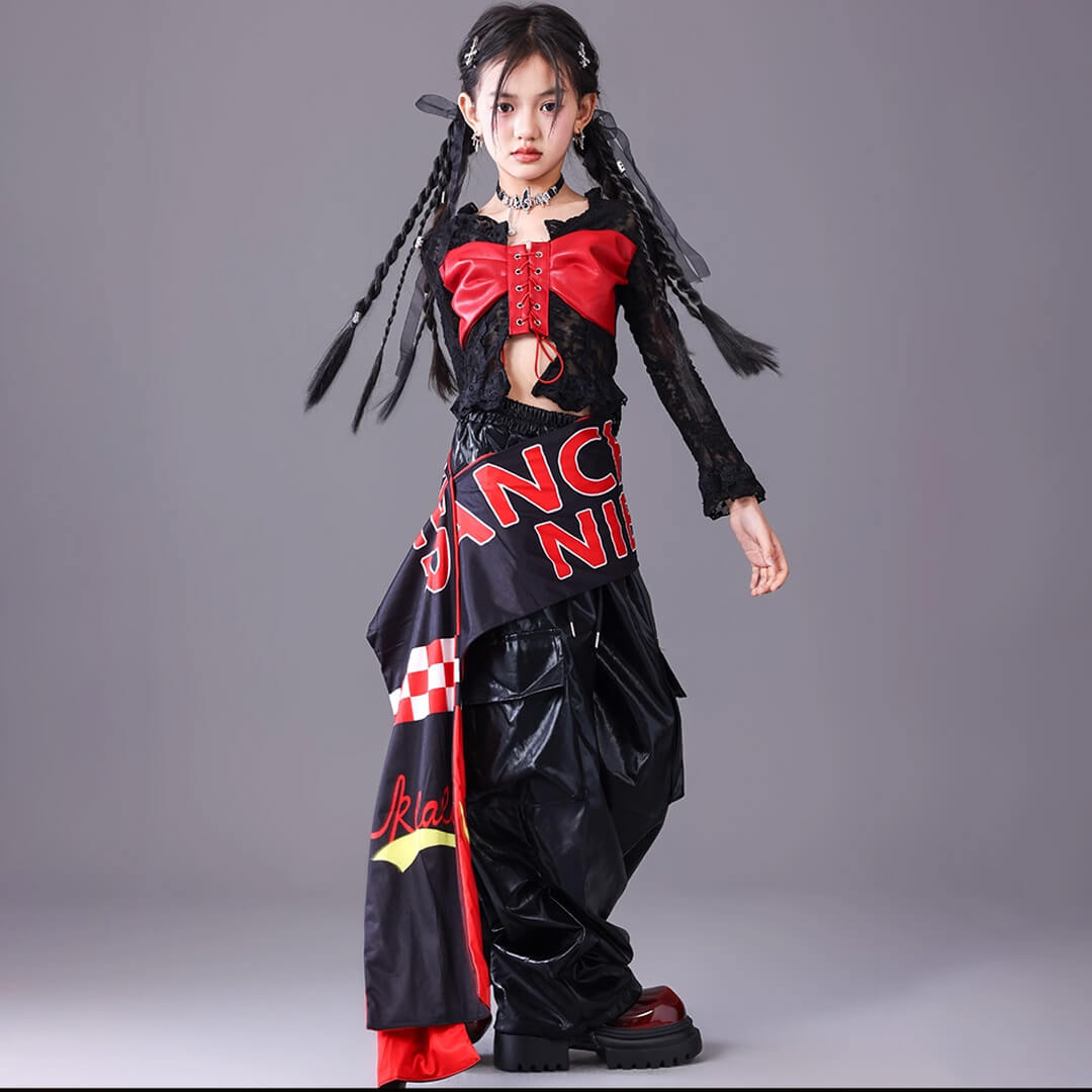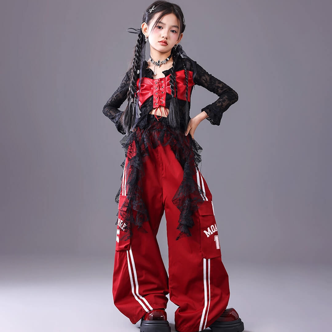 ■Fセット:トップス+レッドパンツ+フリル腰巻