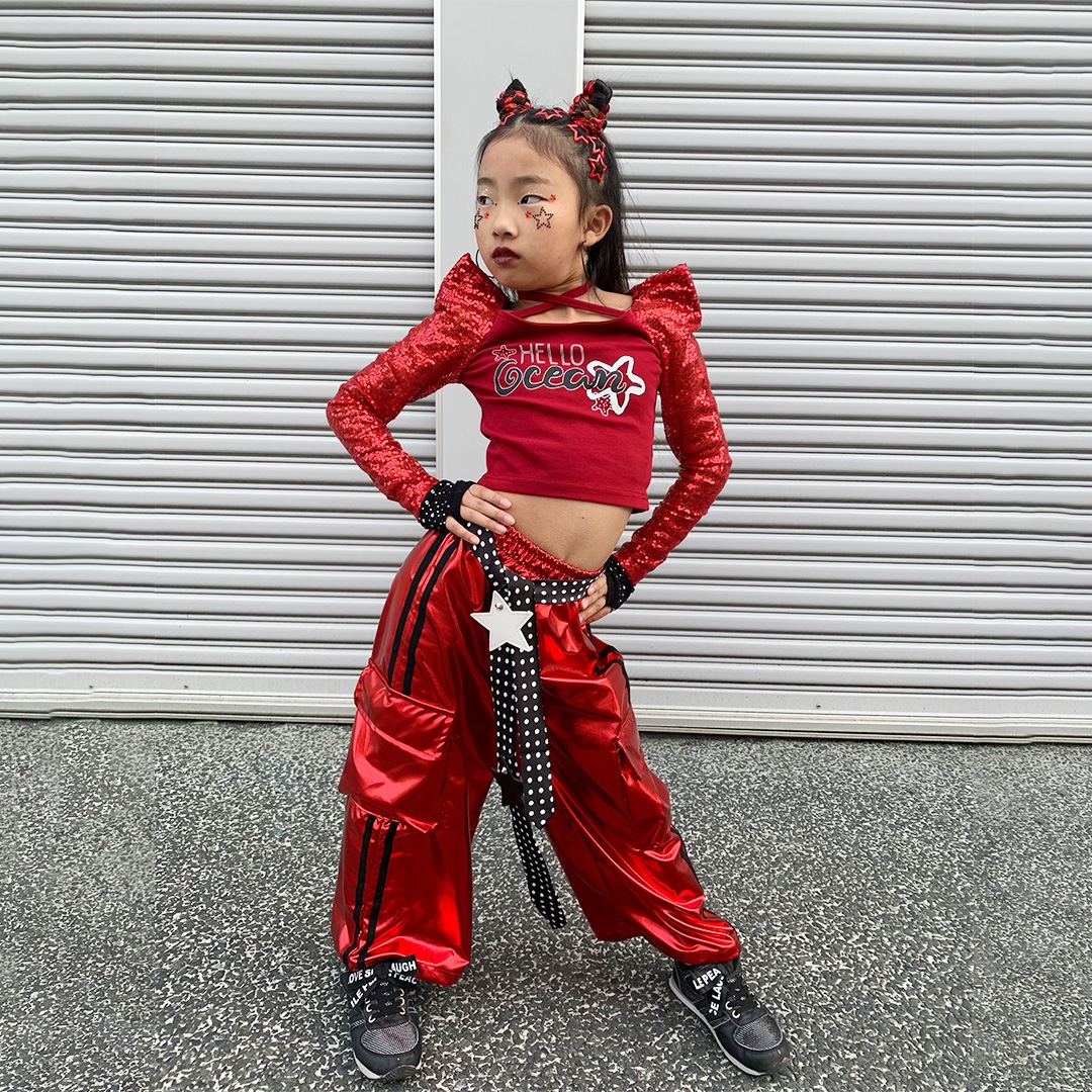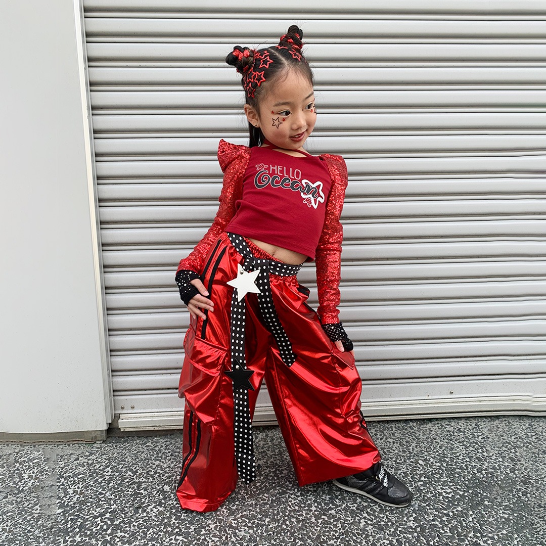 大胆なメタリックレッドが目を引くセットアップ!