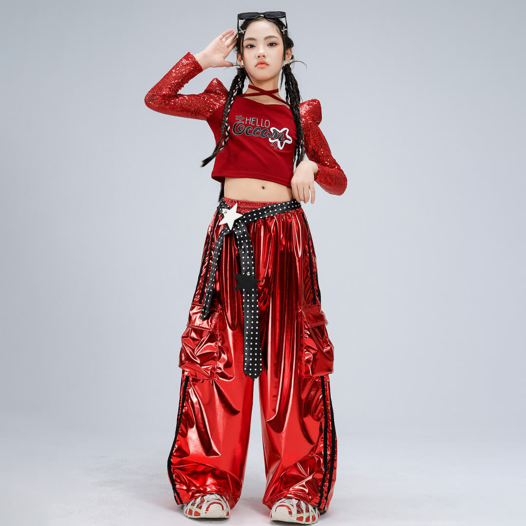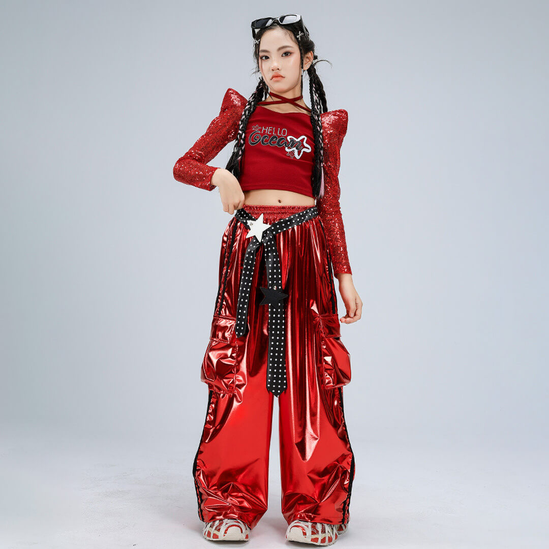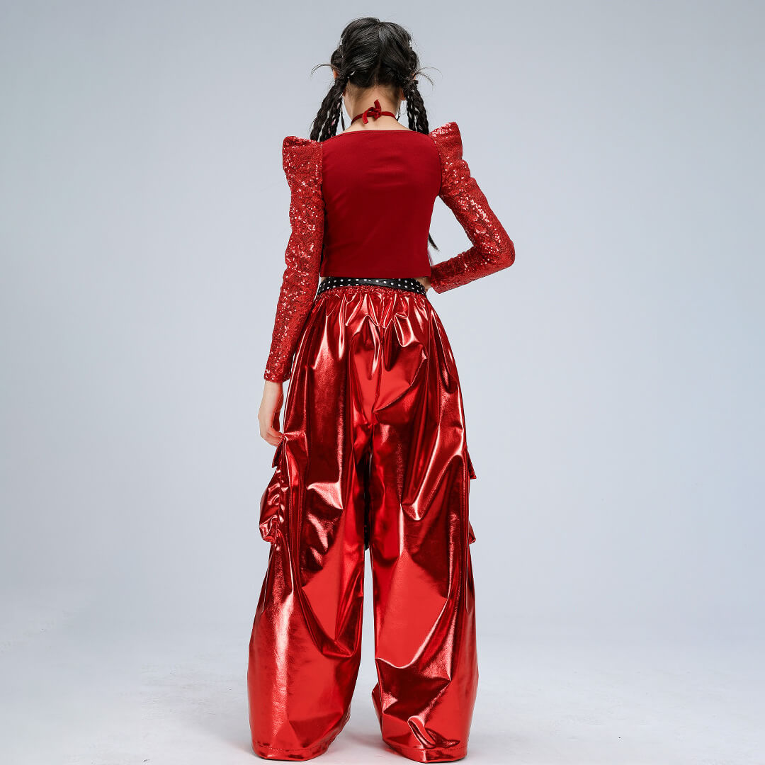 【期間限定SALE】3/19 12時まで!ビビッドレッドスパンコールパンツセット【dc-2441】