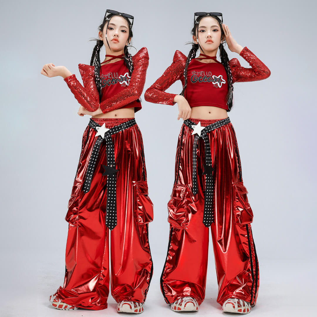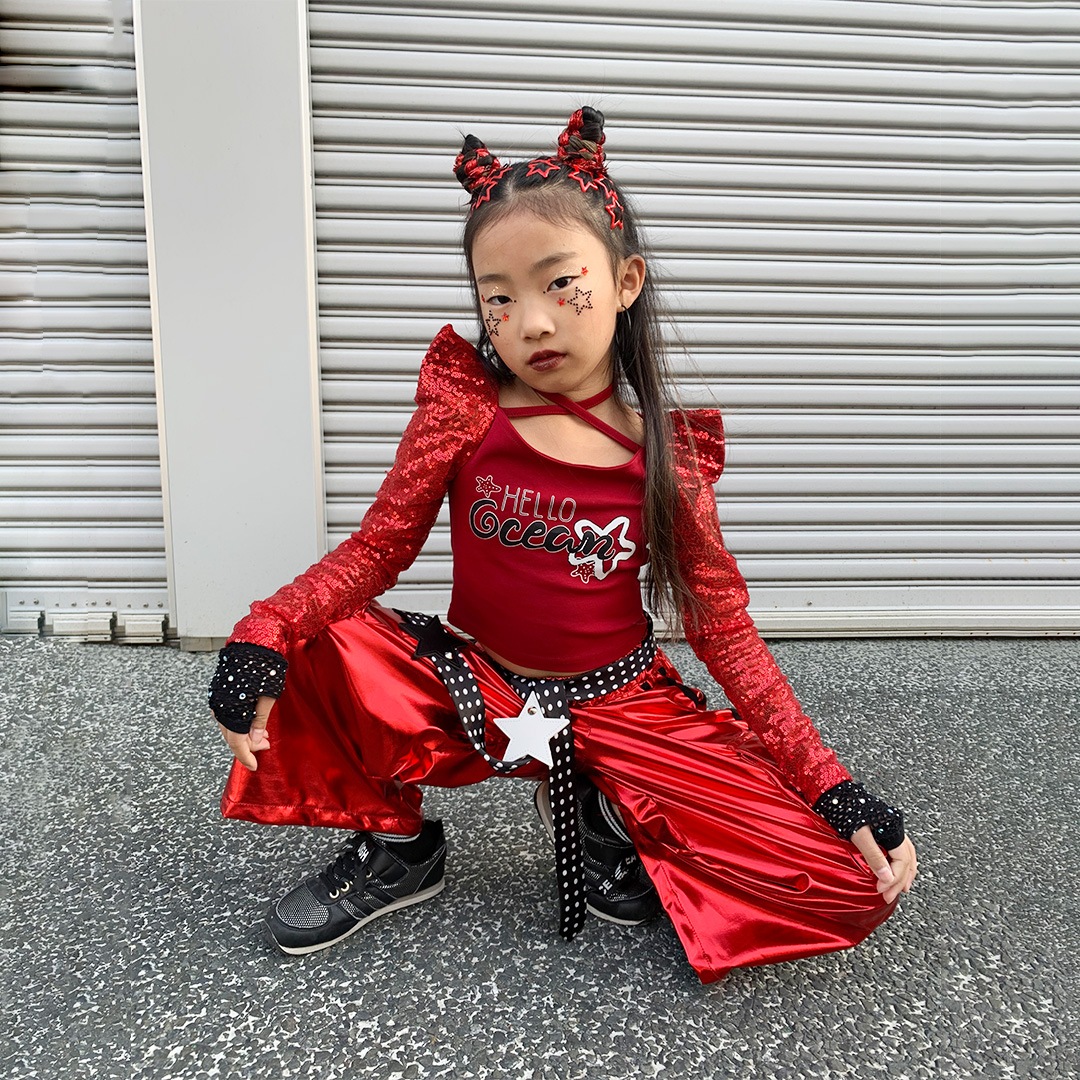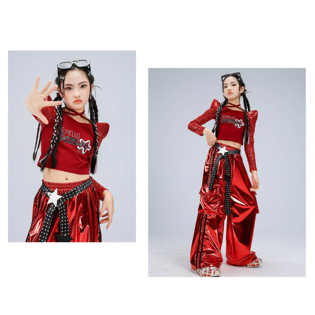 【期間限定SALE】3/19 12時まで!ビビッドレッドスパンコールパンツセット【dc-2441】