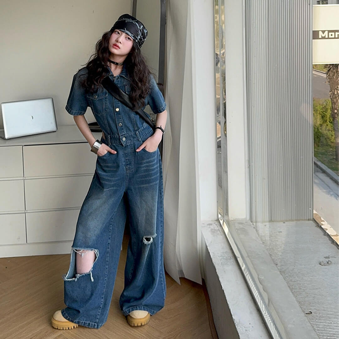 デニム素材が目を引くジャンプスーツが登場!