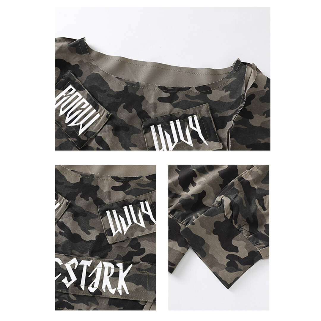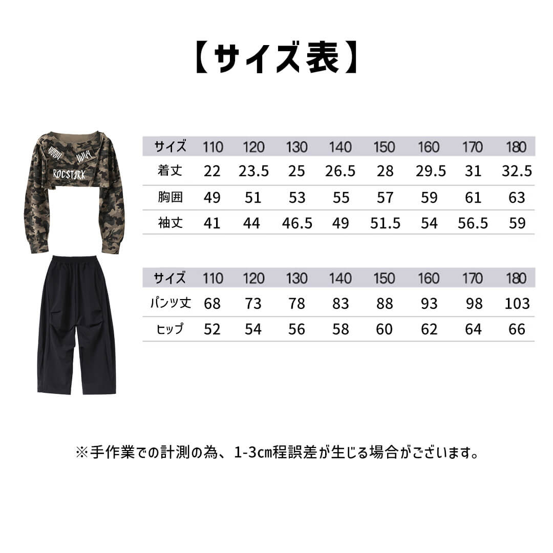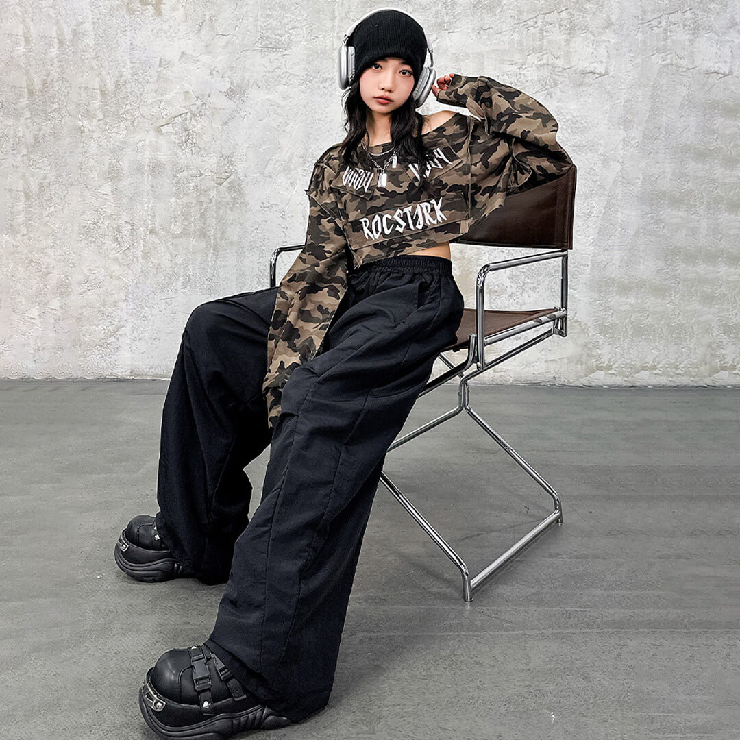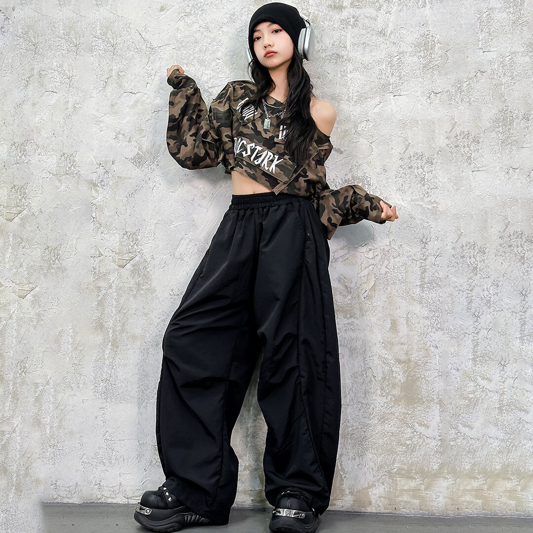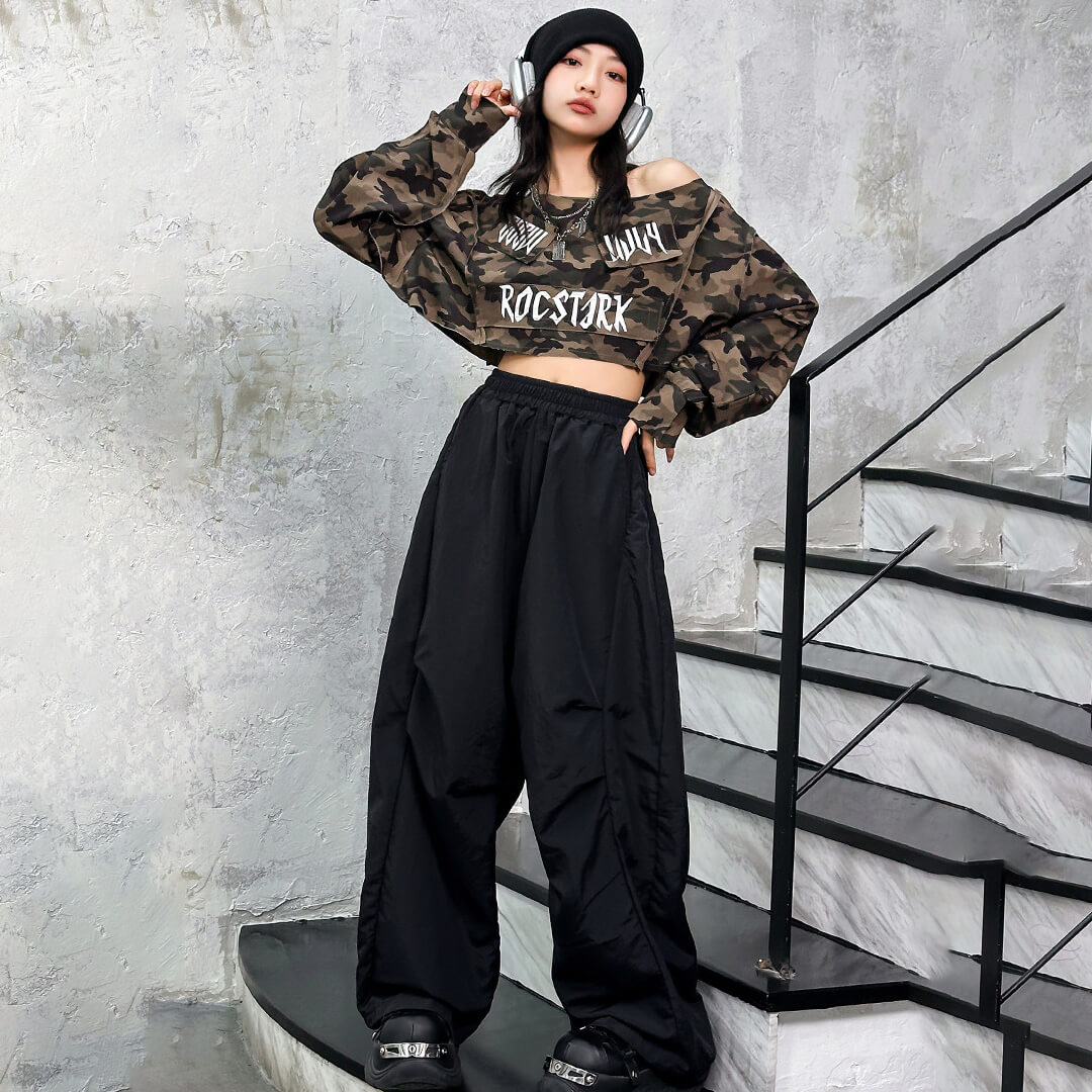 ストリート感たっぷりのカモフラ柄トップスが目立つガールズ衣装!
