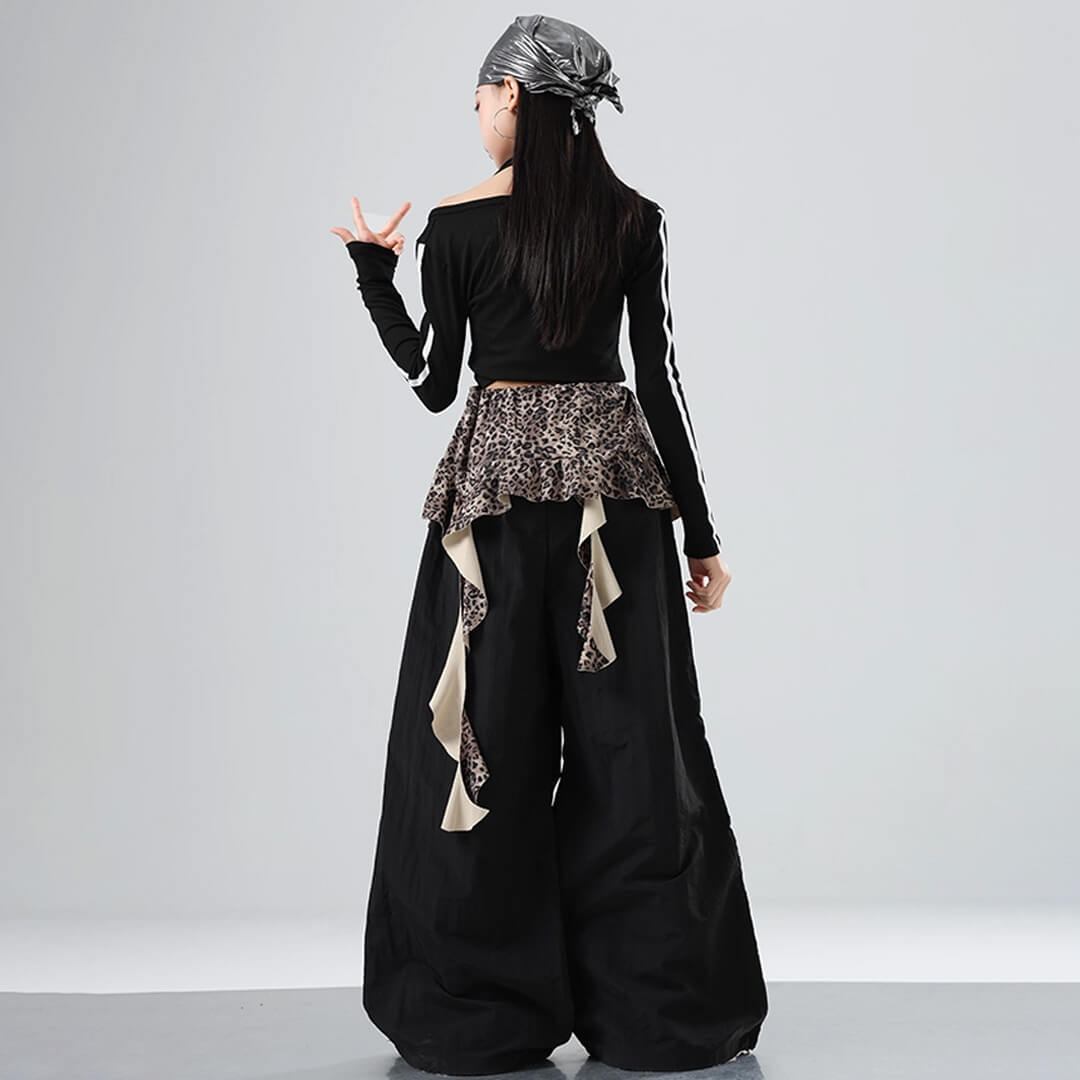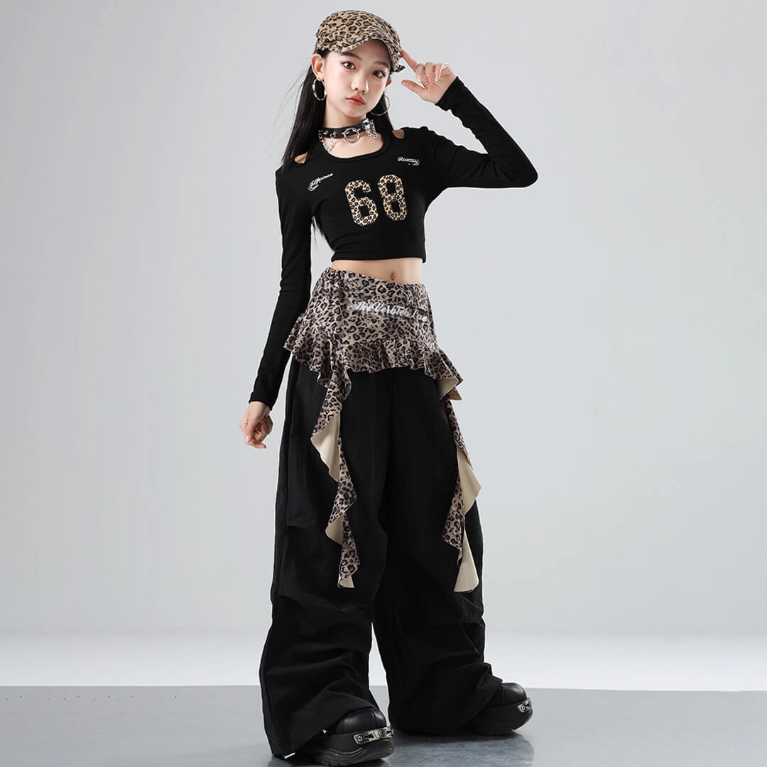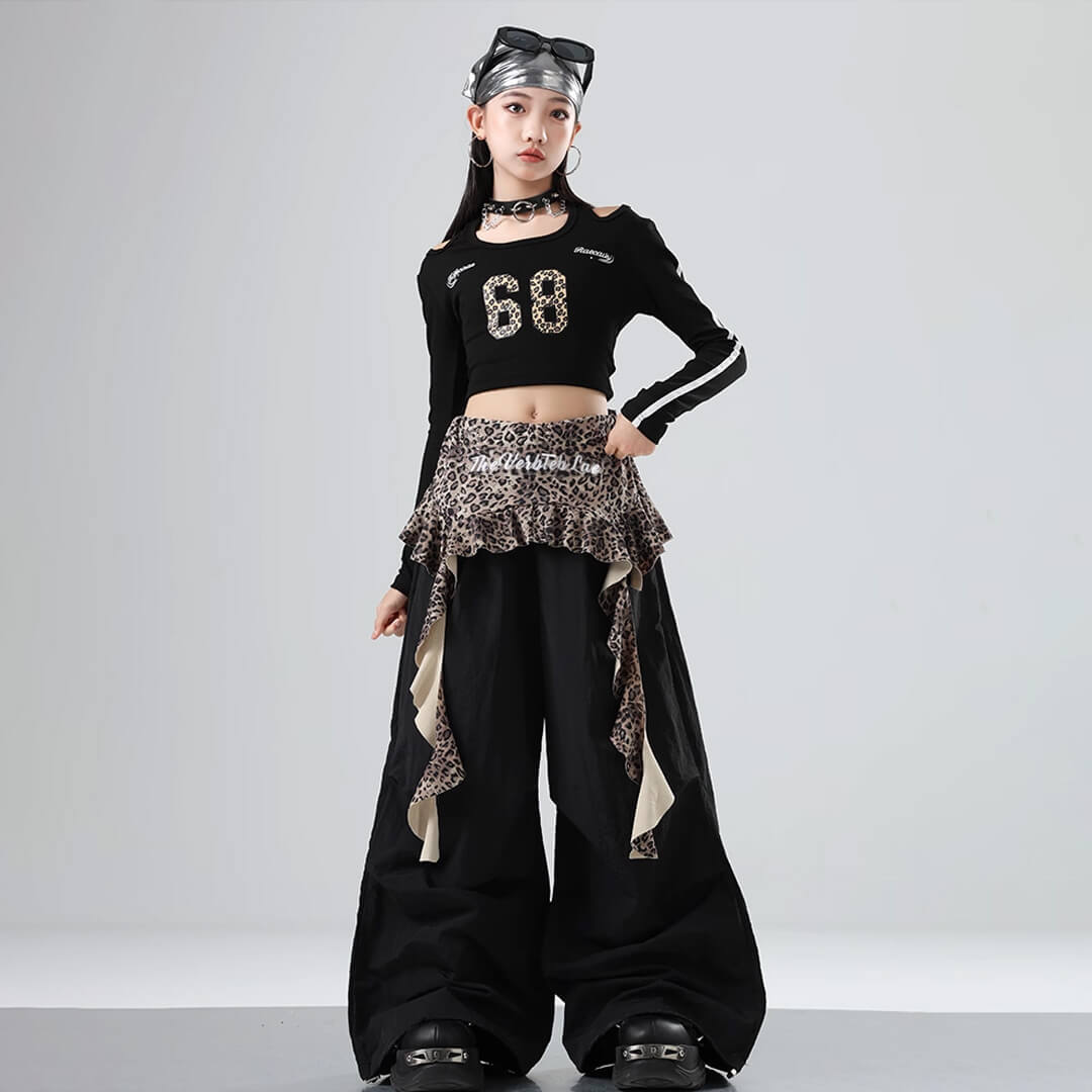 大胆なレオパード柄とクールなブラックが目を引くガールズ衣装!
