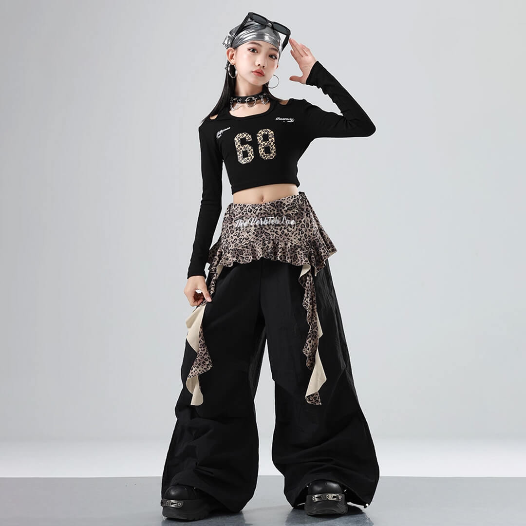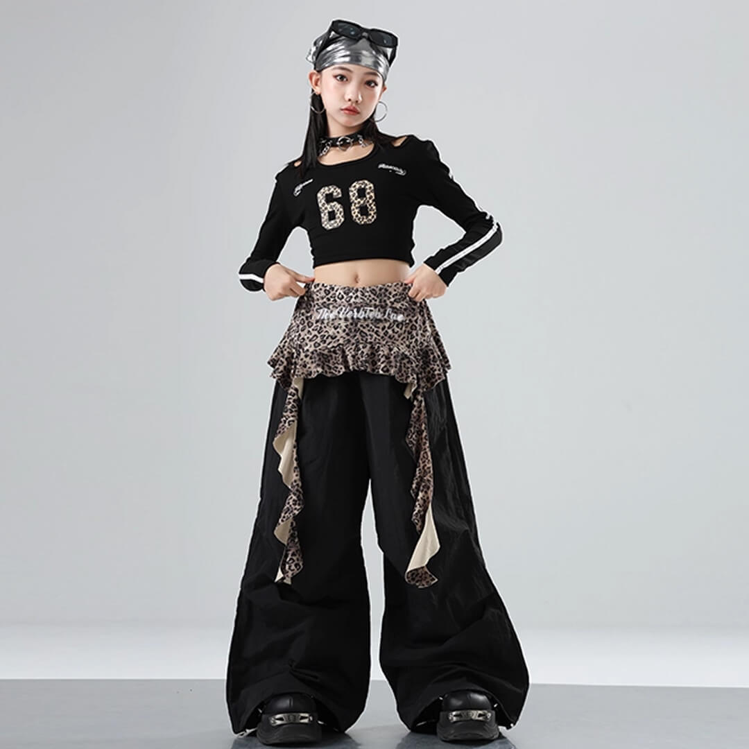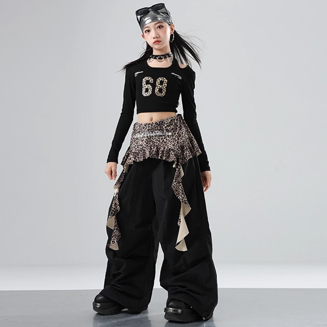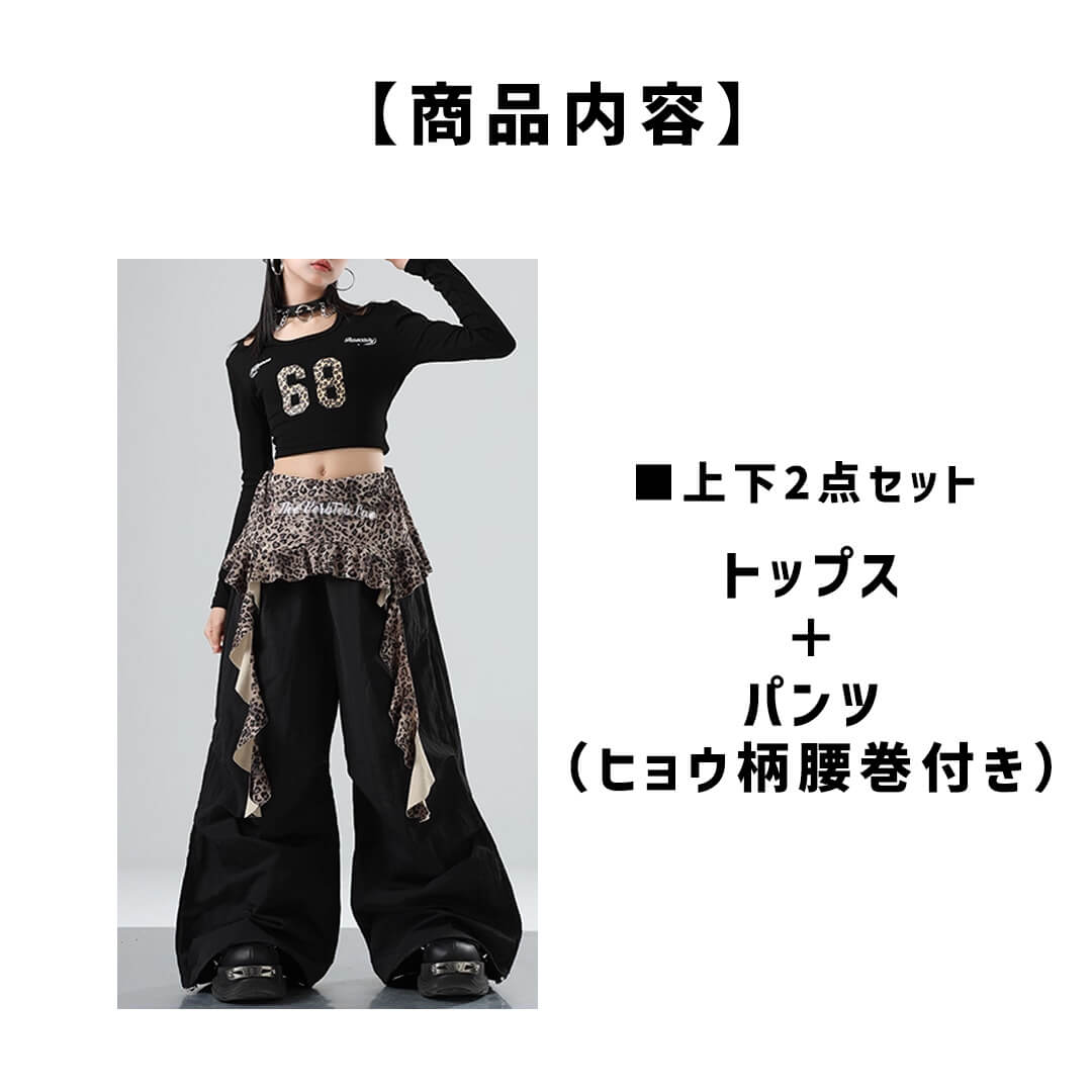 大胆なレオパード柄とクールなブラックが目を引くガールズ衣装!