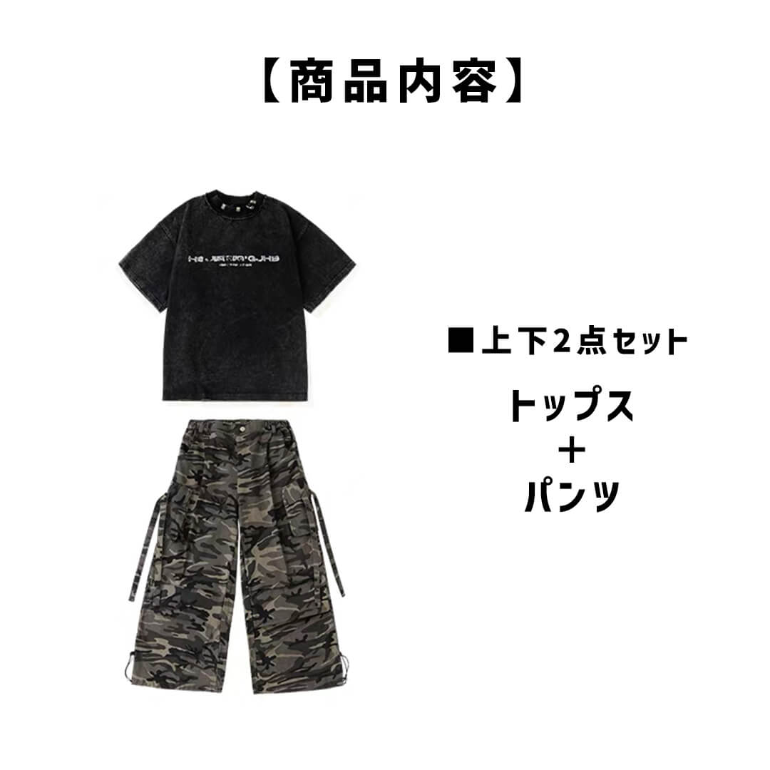 ストリートブラックTシャツ迷彩パンツセット【dc-2474】