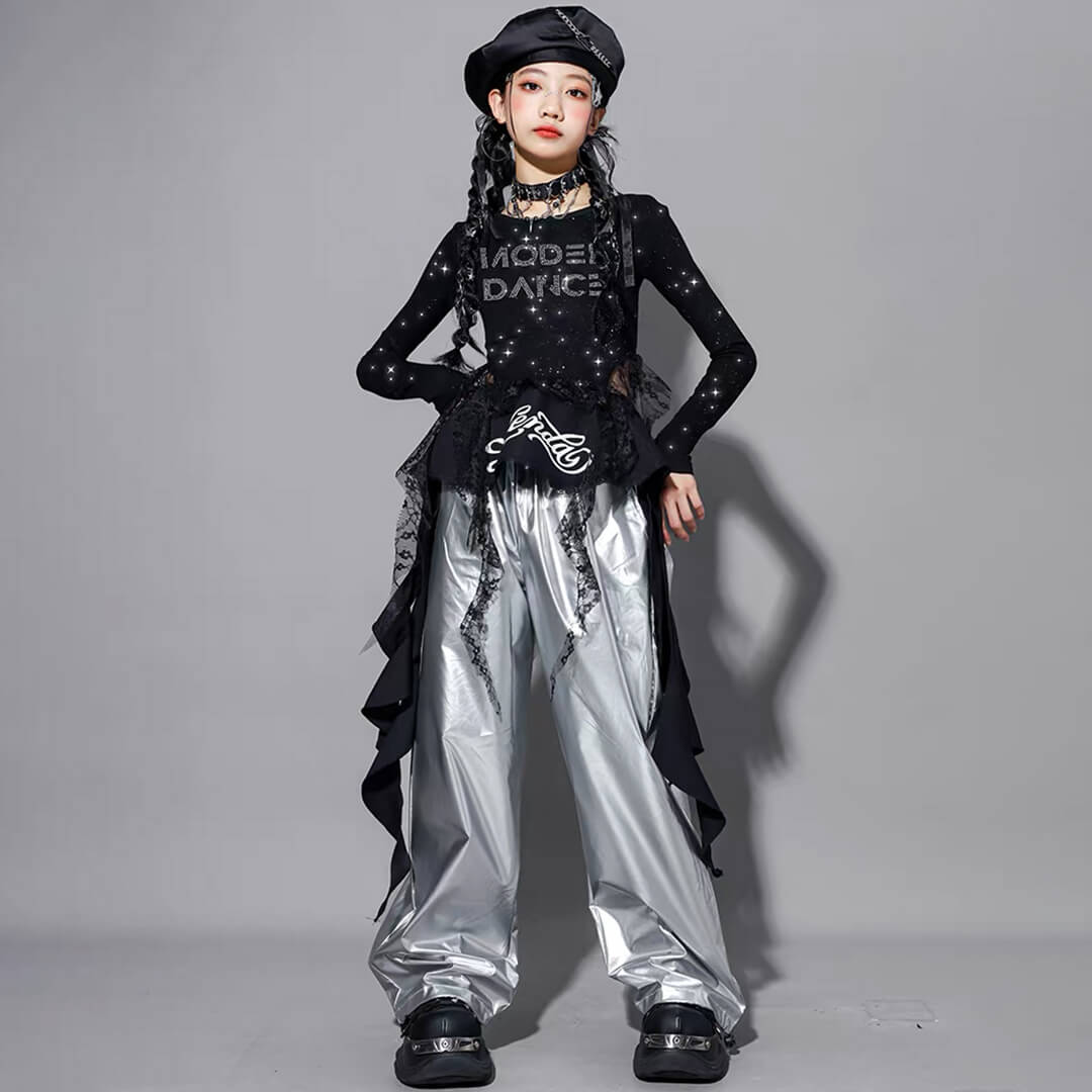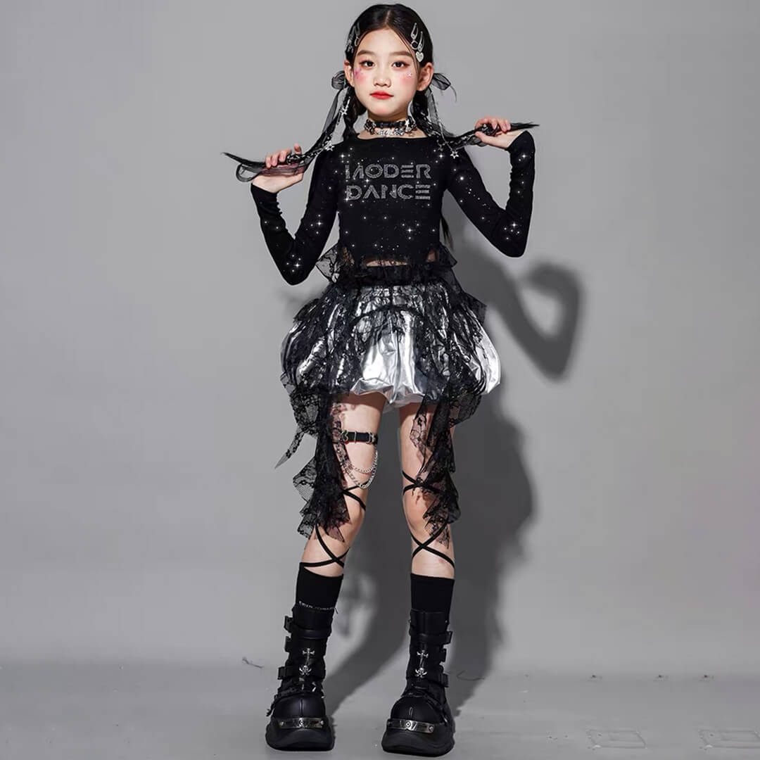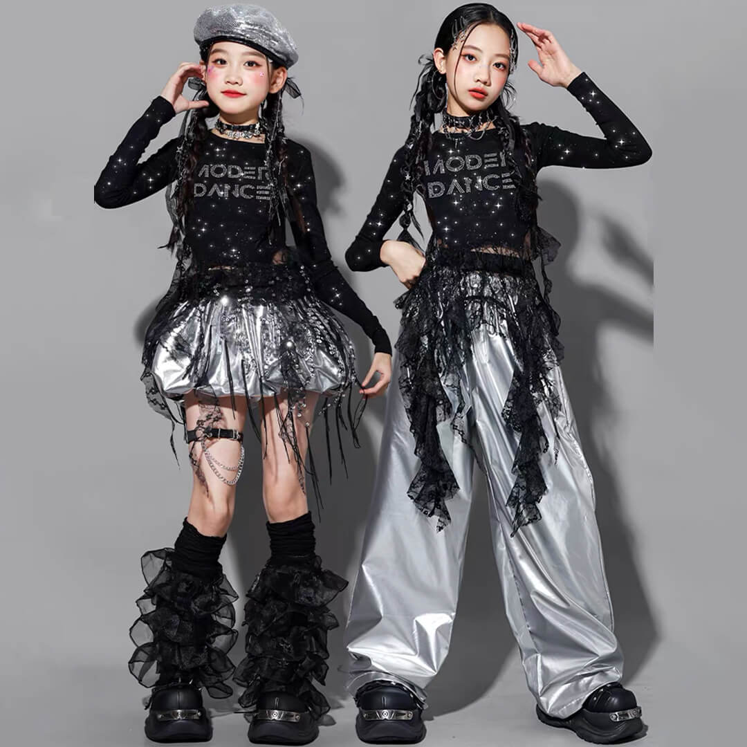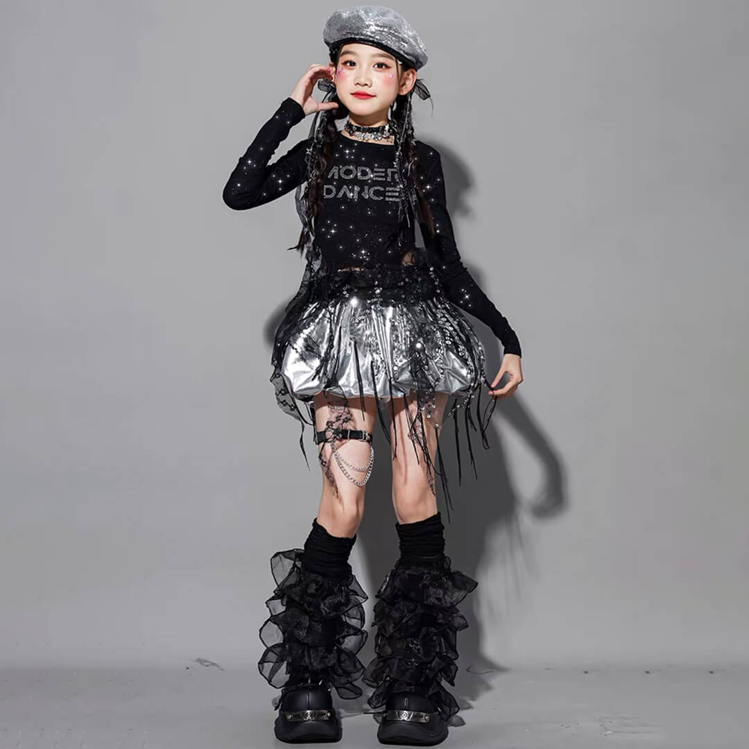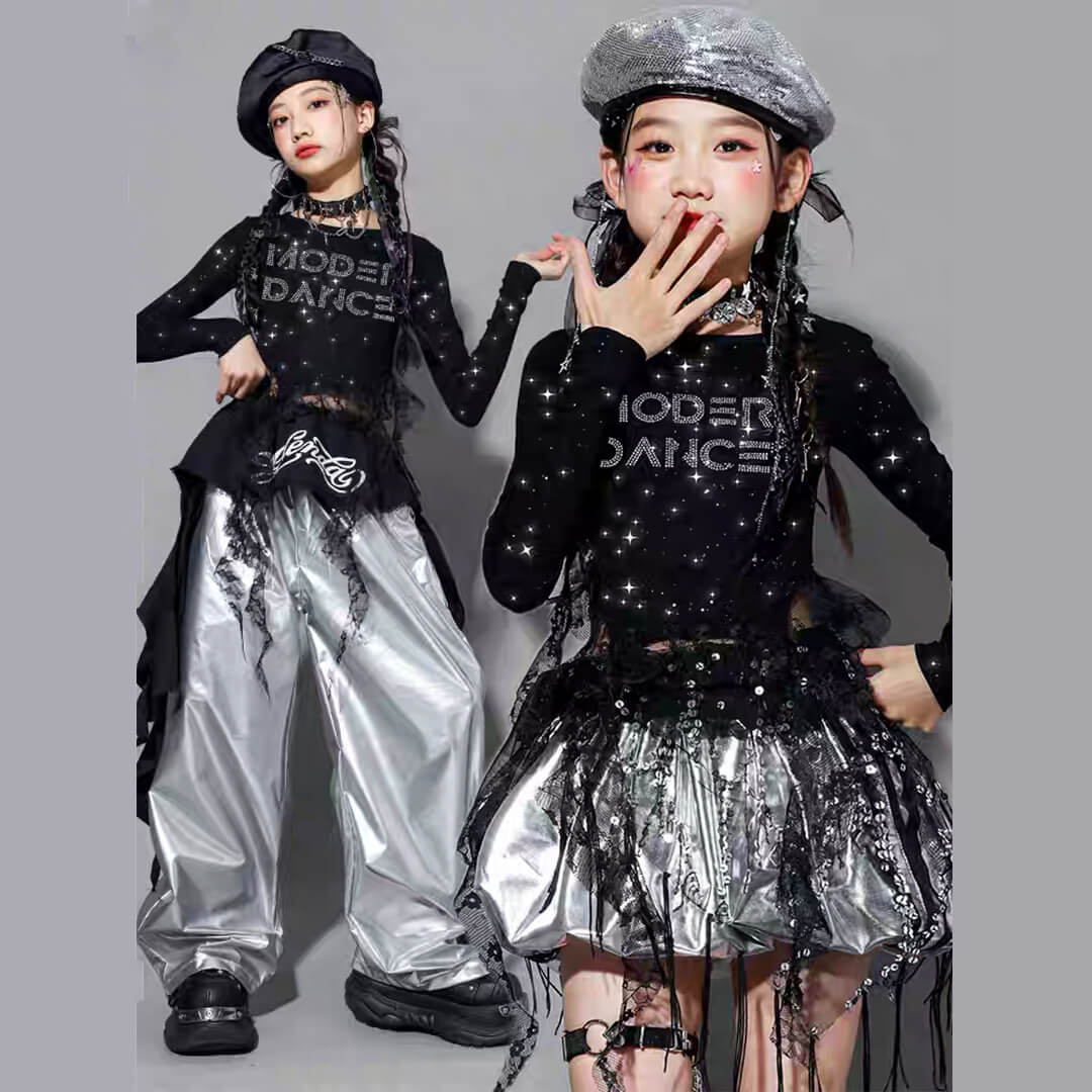 キッズダンス衣装の新作、スパンコールガールズ衣装 ロングパンツ×スカートセットアップ【dc-2473】が登場しました!