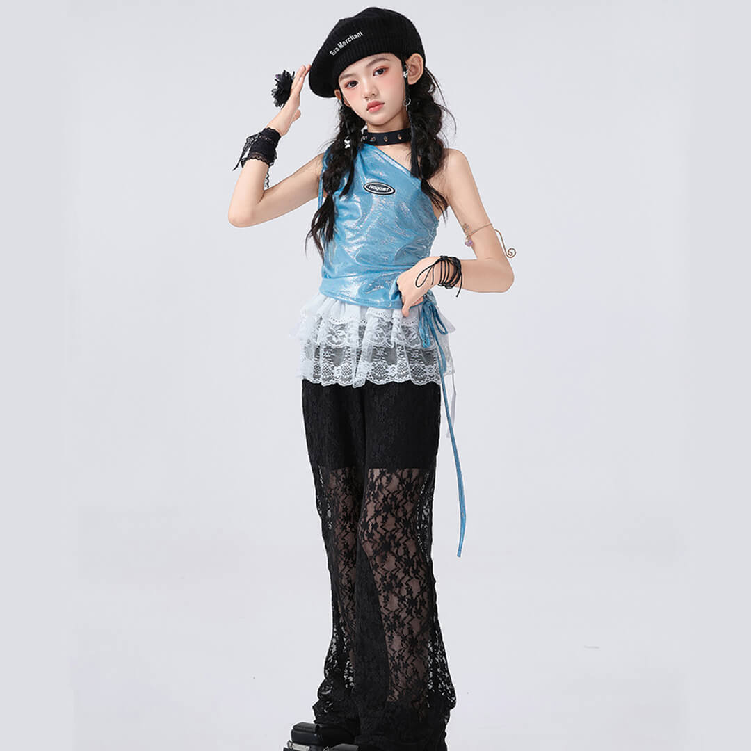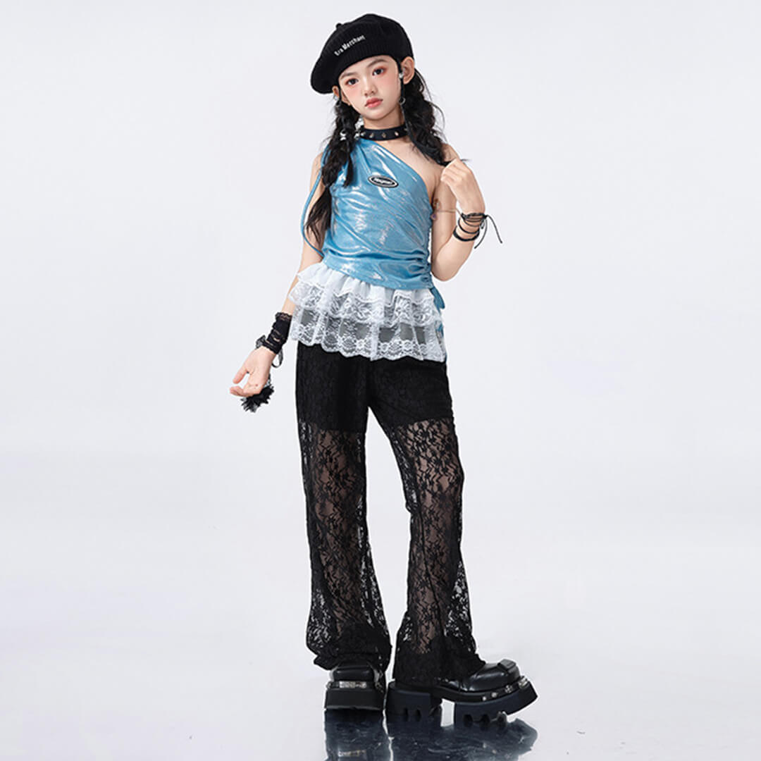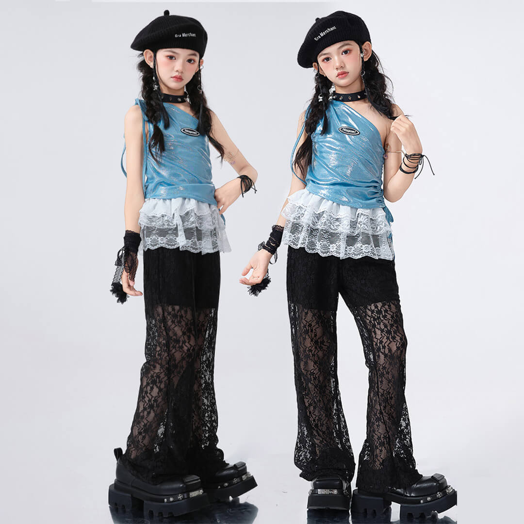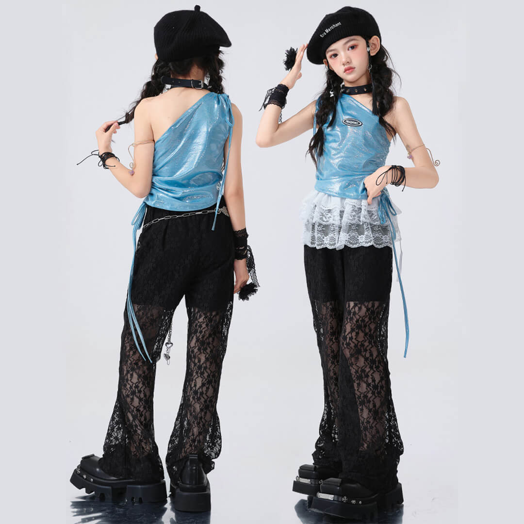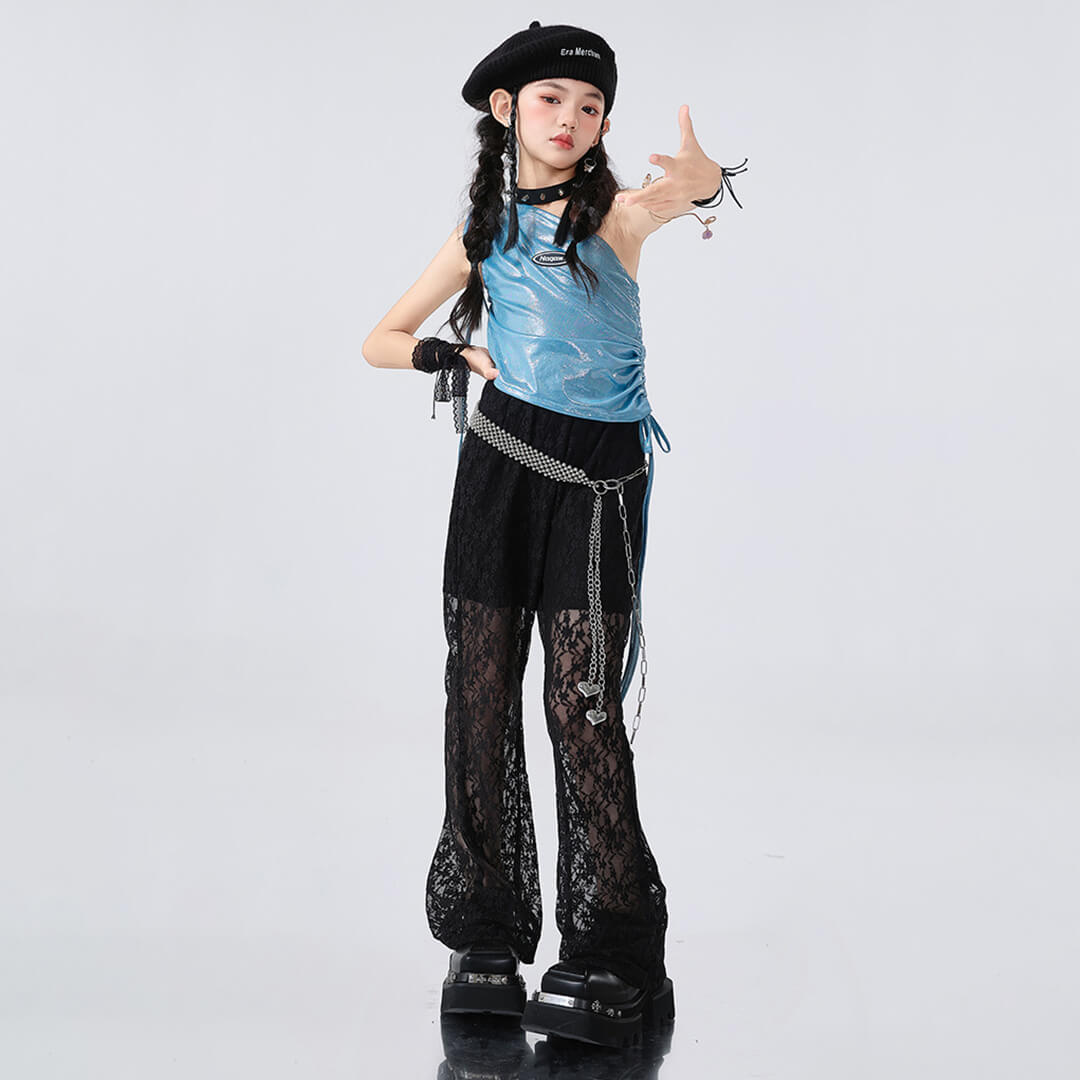 おしゃれなブラックのブルーパンツとトップスが組み合わさり、どんなパフォーマンスでも目を引くこと間違いなしです!