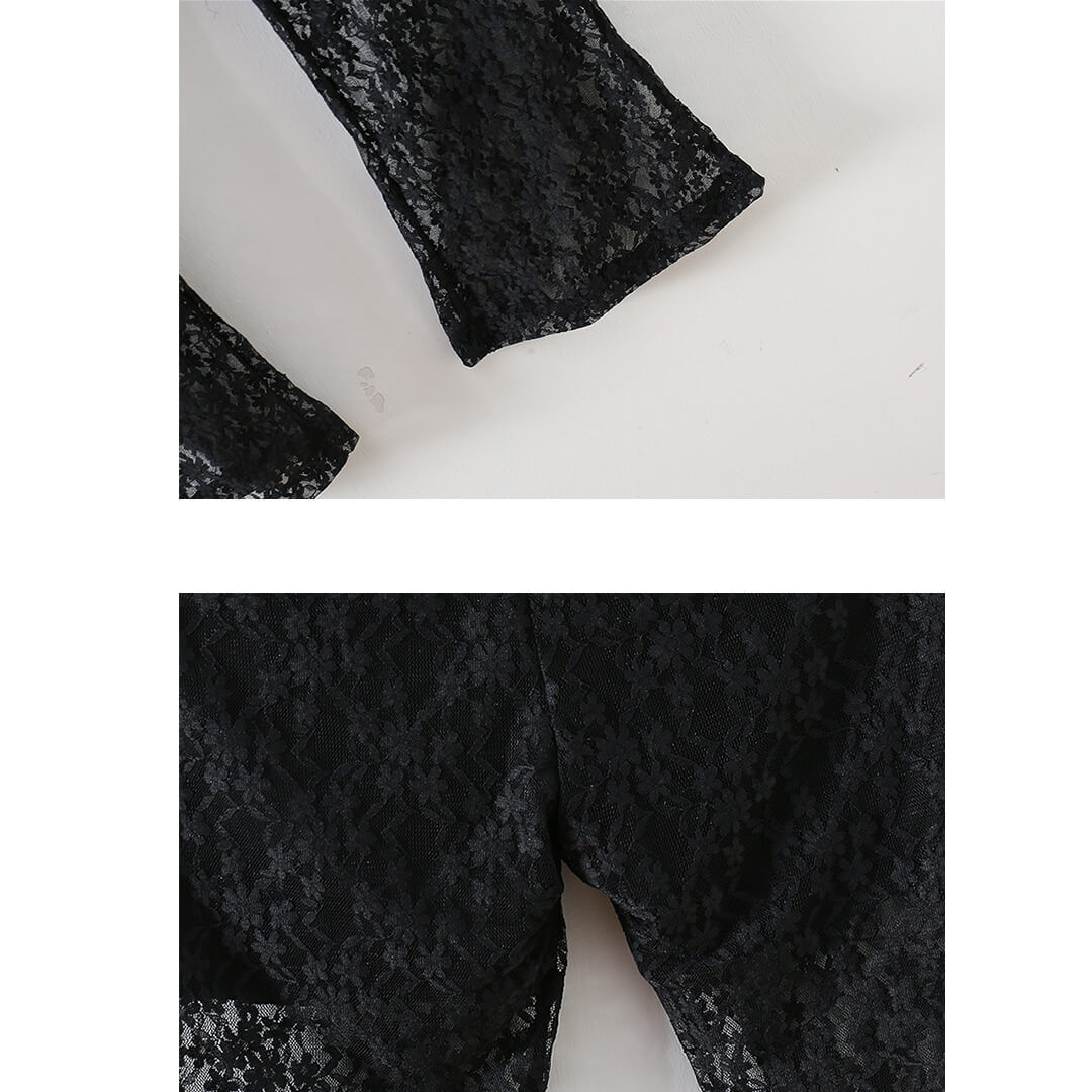 大胆でエレガントな印象を与える「ブラックレースパンツセット【dc-2490】」